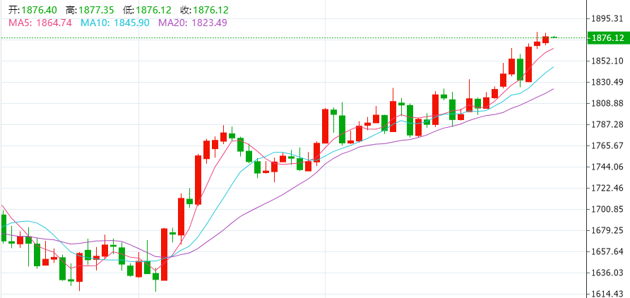 周二,现货黄金继续维持震荡,并受1880美元大关牵制,最终收涨0.31%,报1877.47美元/盎司;现货白银日内维持窄幅震荡,最终收跌0.09%,报23.61美元/盎司。