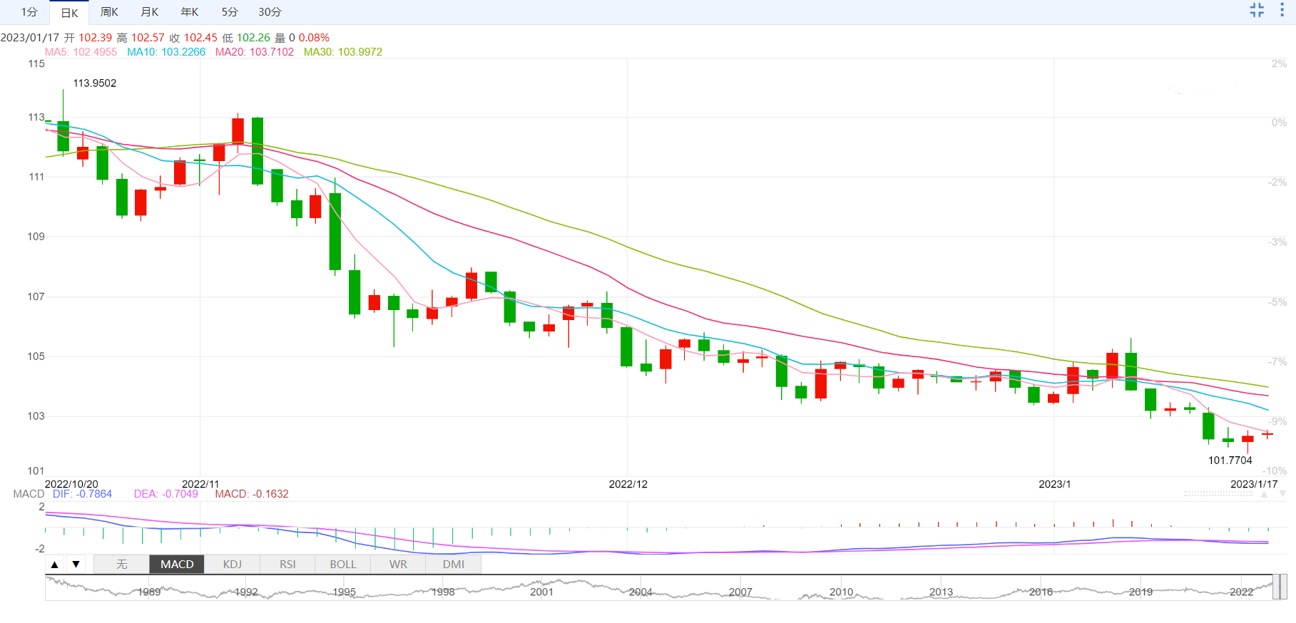 美国市场在周一马丁·路德·金日(Martin Luther King Jr. Day)假期后恢复正常活动,美元指数结束周初上涨,于周二回到102.30区域。由于风险偏好情绪上升,美元指数再度走软,尤其是亚市早盘好于预期的中国基本面数据公布之后。美国数据方面,美国纽约州制造业指数将是唯一发布的数据,同时关注短期国债标售和纽约联储主席威廉姆斯讲话。