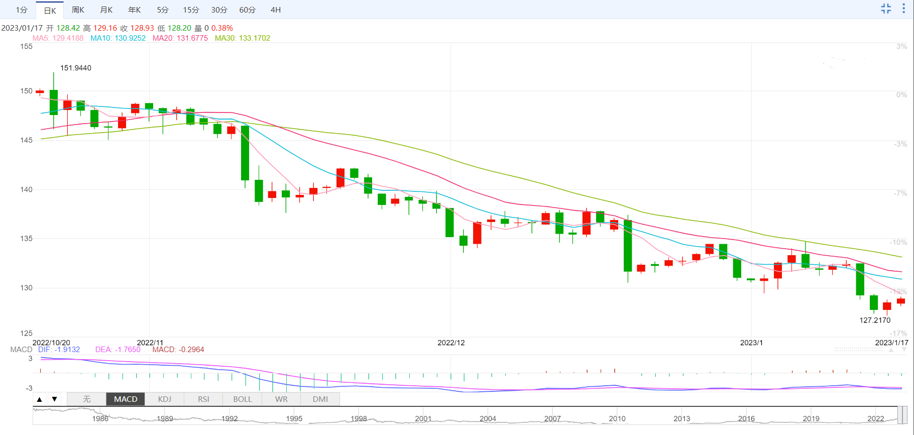 进入欧洲时段,美元兑日元自盘中高点回撤至128.65,逆转前一日自2022年5月底以来最低水平的反弹行情,目前上涨0.08%。汇价最新表现可能与周三公布关键的日本央行利率决议之前期权市场悬而未决有关。值得指出的是,衡量看涨期权与看跌期权之间息差的美元兑日元一个月风险逆转率(RR)录得12月底以来最大单週跌幅,週五尾盘报-0.520。不过週一的RR为正值+0.190。还要注意的是,当日RR为四日来首日录得正值,同时录得1月5日以来最大升幅。