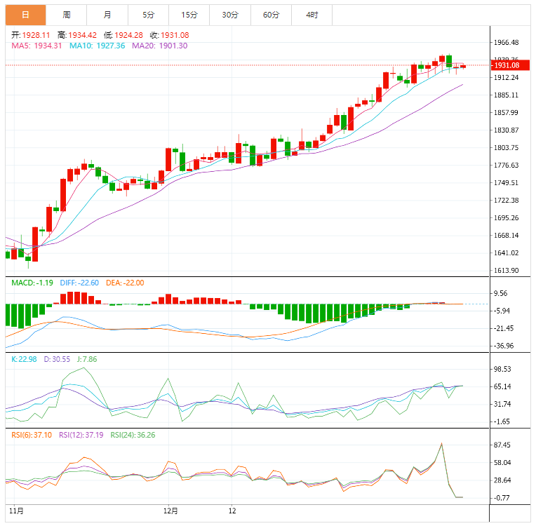 现货黄金:截止发稿,现货黄金小幅上涨,现报1931.00,涨幅0.14%。欧市盘前,黄金价格在1930美元附近保持防御性,在周一欧洲交易时段温和上涨,因为交易员开始了关键的一周,包括美联储的货币政策和美国1月份的就业数据。增加黄金交易者谨慎乐观情绪的因素可能是中国从为期一周的假期中回归,以及美联储鸽派加息的希望和悲观的非农就业数据(NFP)。