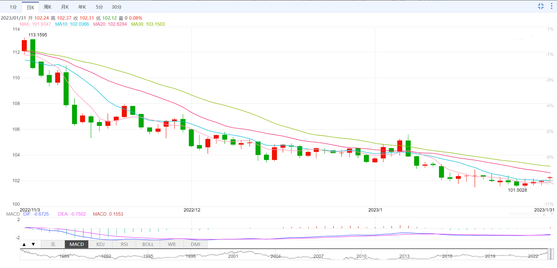 由于美元指数调整至101.80附近后大幅反弹,令该货币对遭遇巨大卖盘。由于市场普遍预期美联储将加息25个基点,美元指数强势反弹。美联储实现价格稳定的路线图远未结束,因为美国目前的通货膨胀率是目标水平2%的三倍。因此,美联储不能在这个时间点停止加息。美国方面,美元指数继小幅回调后,正寻求延续上涨趋势。美联储公佈利率决议前,市场已经出现波动,降低市场参与者的风险偏好。