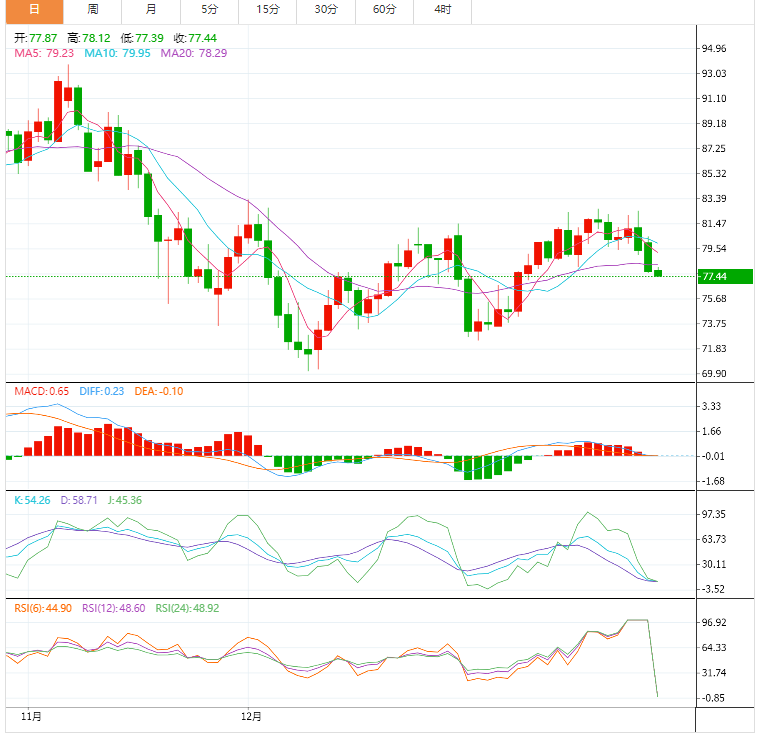 支撑位:78.27 77.01 74.87