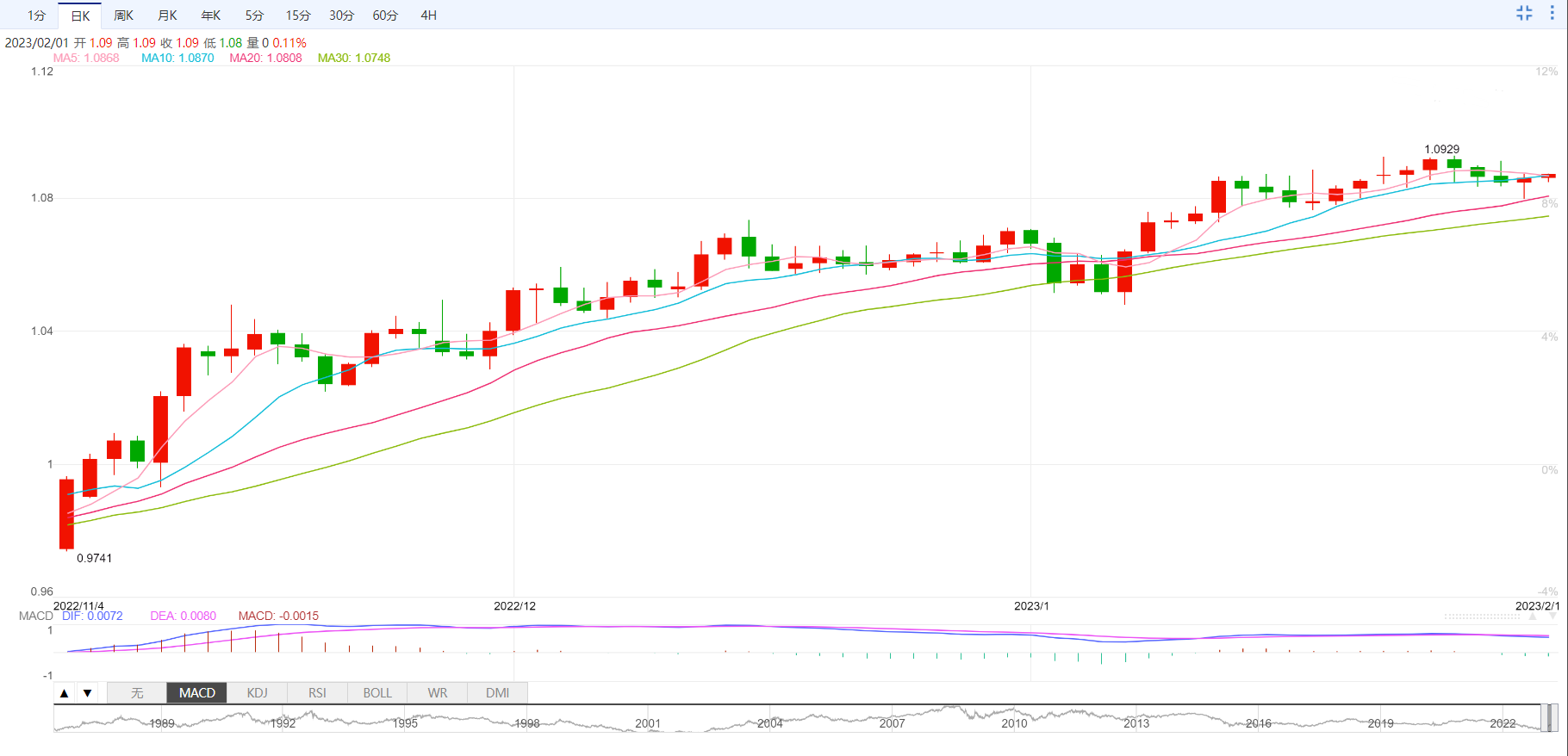 欧元/美元:截止发稿,欧元/美元小幅波动,现报1.0870,涨幅0.07%。欧市盘前,欧元兑美元多头失去动能,汇价在进入周三欧洲时段徘徊于1.0860-70附近。
