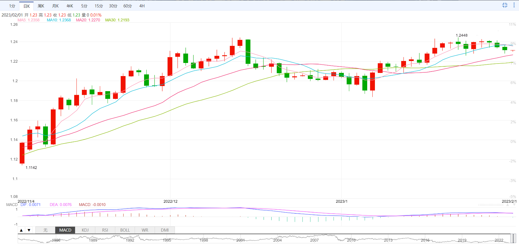 技术面:美元指数回撤0.06%,至102.03,跌破101.50(2023年1月26日低点)将跌向101.29(2022年5月30日低点)和100.00(心理关口)打开大门。上行方面,初步阻力是周度高点102.89(1月18日),其次是105.63(1月6日月高点),然后是106.47(200日均线)。
