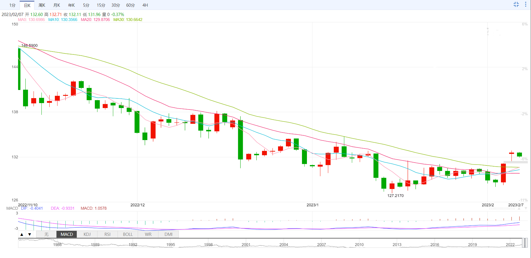 美元兑日元小幅走低至盘中低点,录得三日来首日下跌,进入周二欧洲时段前小幅承压于132.30附近。该货币对从RSI获得线索从去年12月至今年1月期间波段的50%斐波纳契回档位回撤。即便如此,汇价依然看涨,因为价格维持前一周对关键阻力位的突破,目前转为支撑位。RSI自超买求回落,因为汇价整理近期涨势似乎是合理的。不过MACD信号看涨且价格成功突破阻力转支撑水平似乎有利于该货币对多头。