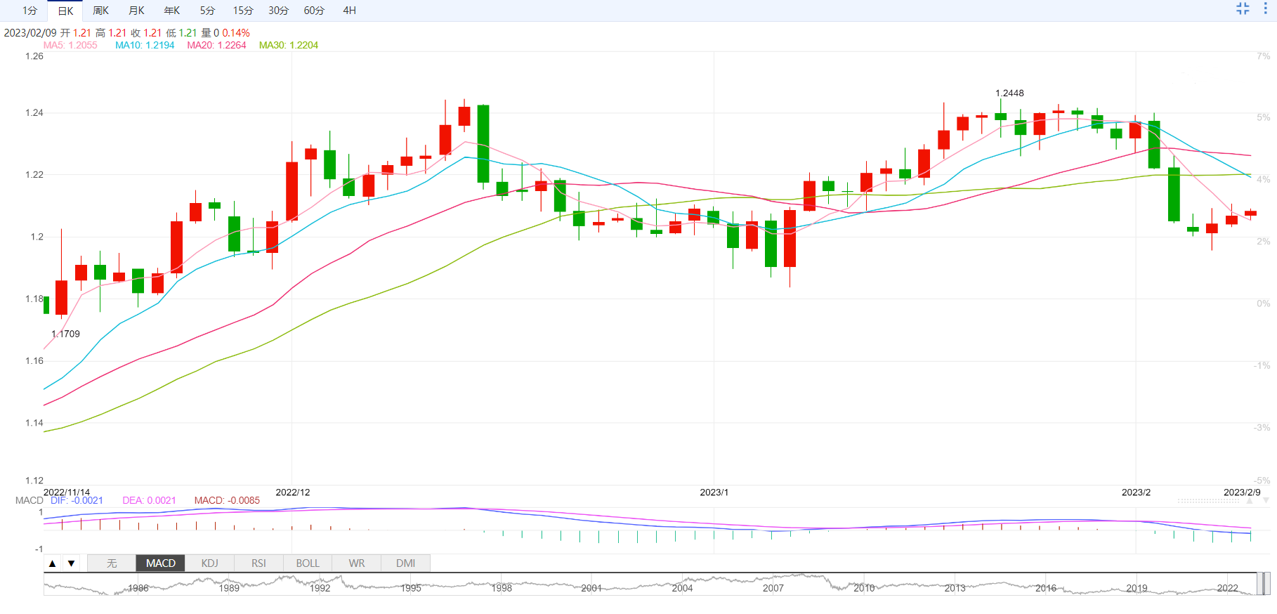 英镑/美元:截止发稿,英镑/美元走高,现报1.2101,涨幅0.26%。欧市盘前,英镑兑美元在1.2085附近刷新盘中高点,多头连续第三日占上风。在美元普跌之际,该货币对忽略英国经济政治担忧。这也可以与週五发布英国第四季度GDP初值前市场整理有关。英国皇家特许测量师学会(RICS)的调查数据在当天早些时候提到,英国房地产市场上个月遭遇了自2009年以来最广泛的价格下跌,因为过去一年的加息给潜在买家带来了压力。