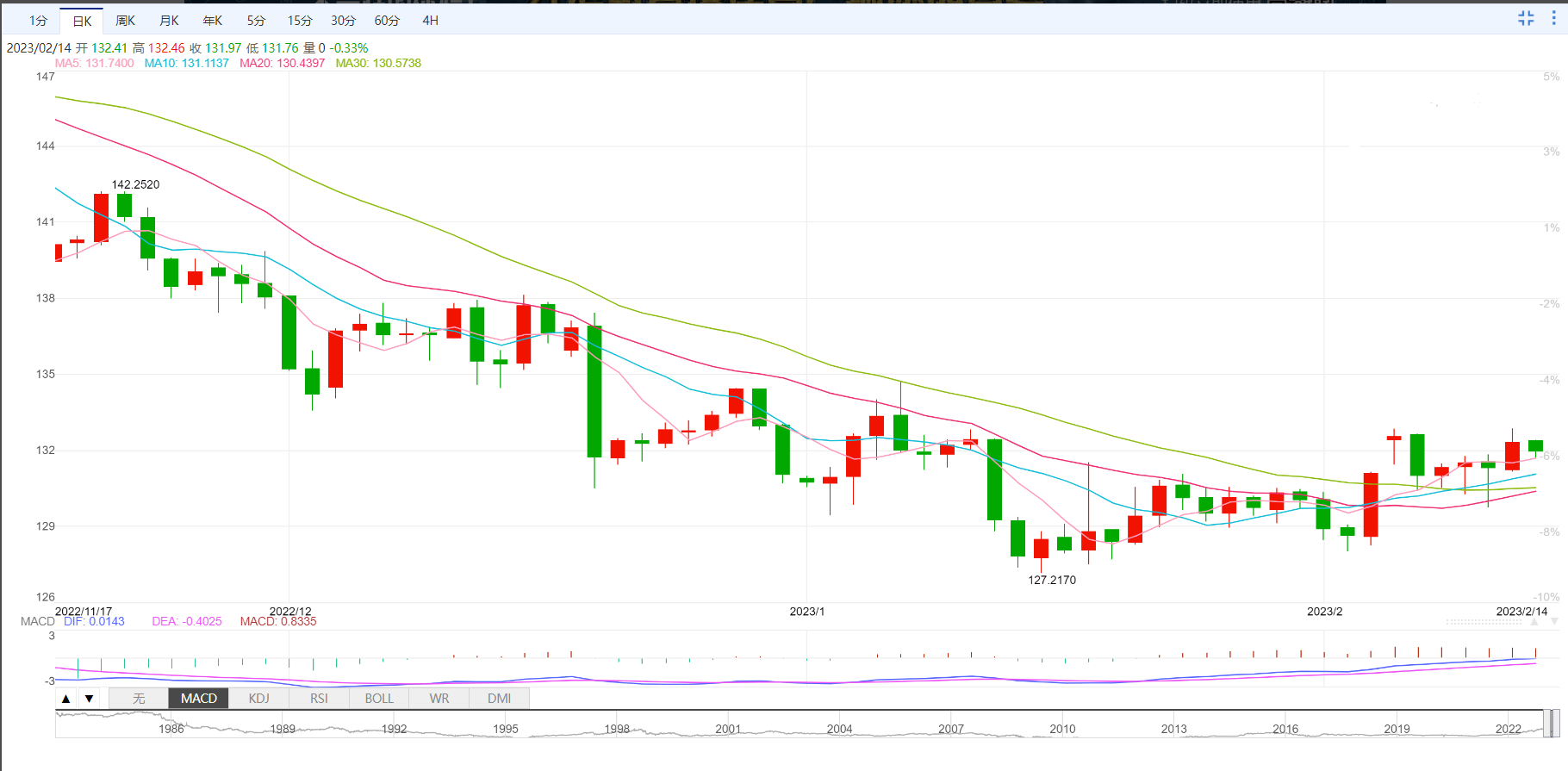 美元/日元小幅下跌,处在在盘中低点131.90附近,原因是日本政府週二早些时候正式提名植田和男出任新一任日本央行行长。在这期间,美元/日元盘初延续上週以来的回调跌至132.90附近,并构筑“双顶”,这是看跌形态。同样证明美元/日元最近疲弱的是相对强弱指标(14)线,该指标自超买出现180度反转,同时令美元/日元看跌的指标还包括MACD信号看跌。美元/日元可能会跌至处在131.00附近的200小时移动均线(HMA)水平。然而,2月2日以来的上行倾向支撑线,构成短期三角形形态的一部分,之后可能会在130.30附近挑战空头。