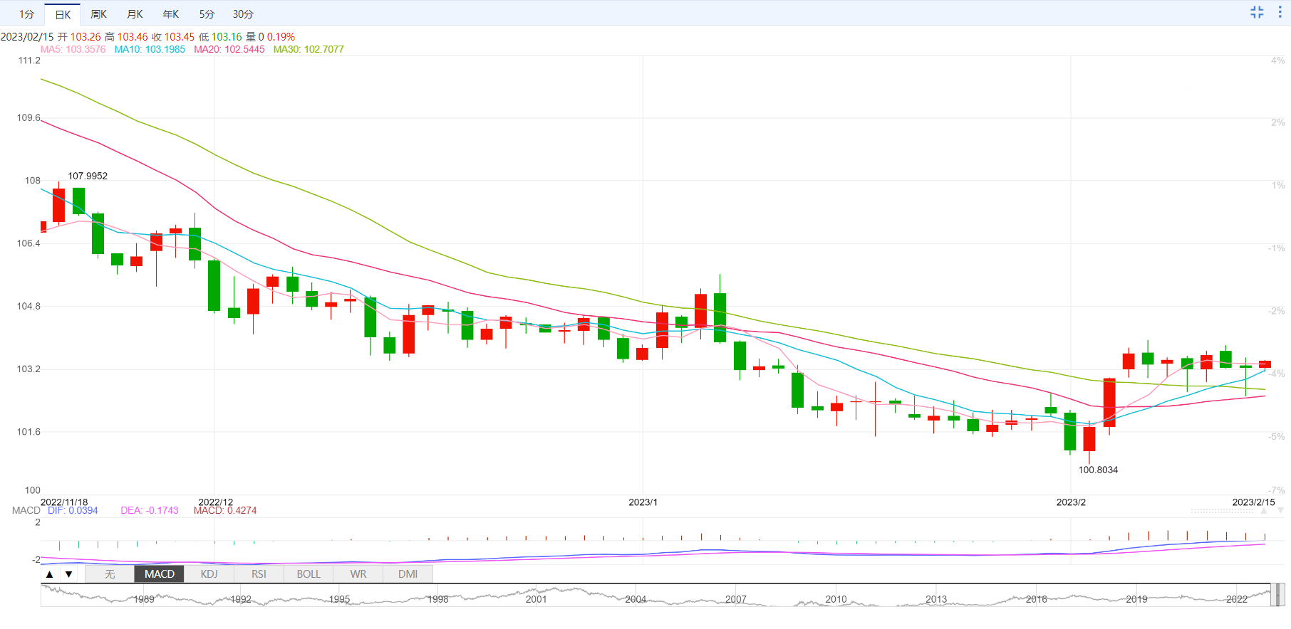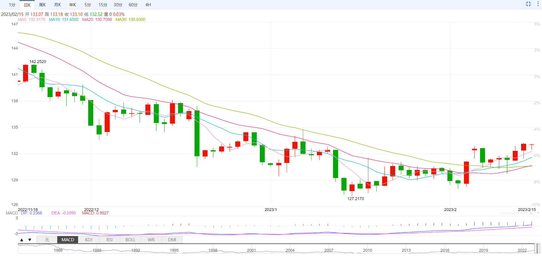 周三盘中,美元指数上涨至103.45,涨幅0.19%;欧元兑美元下跌至1.0716,跌幅0.17%;英镑兑美元下跌至1.2149,跌幅0.17%;美元兑日元上涨至133.10,涨幅0.01%;澳元兑美元下跌至0.6933,跌幅0.76%。