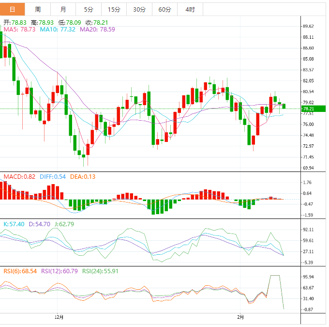 支撑位:78.11 76.85 76