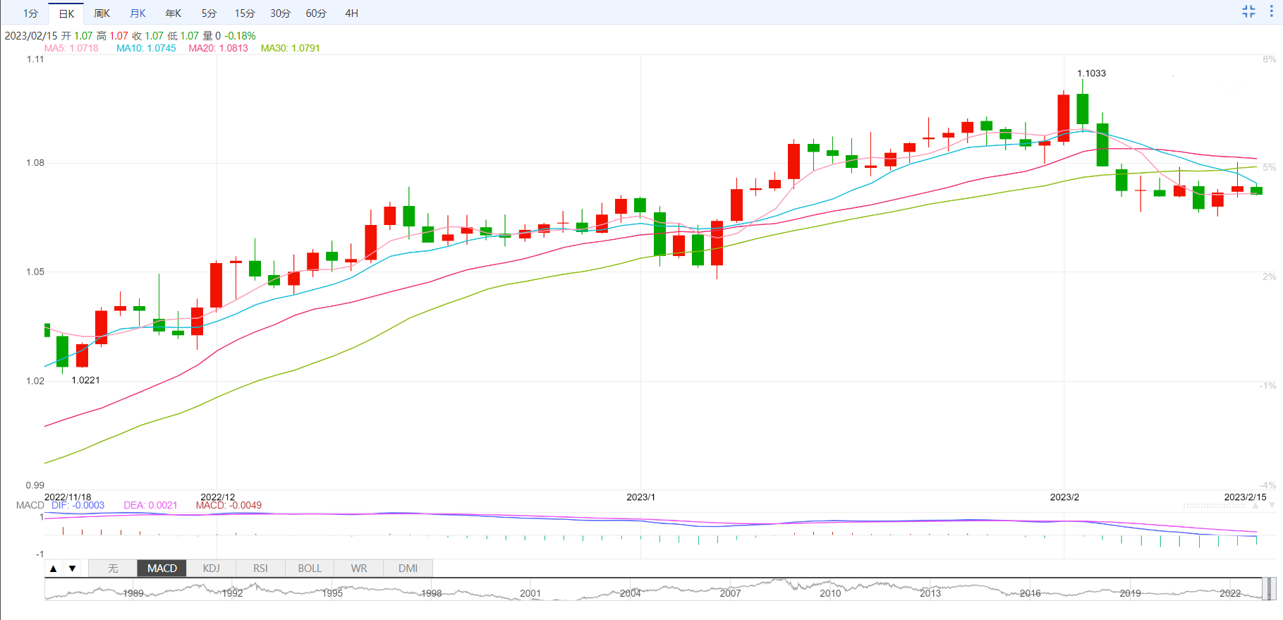 支撑位:1.0695 1.0652 1.0597