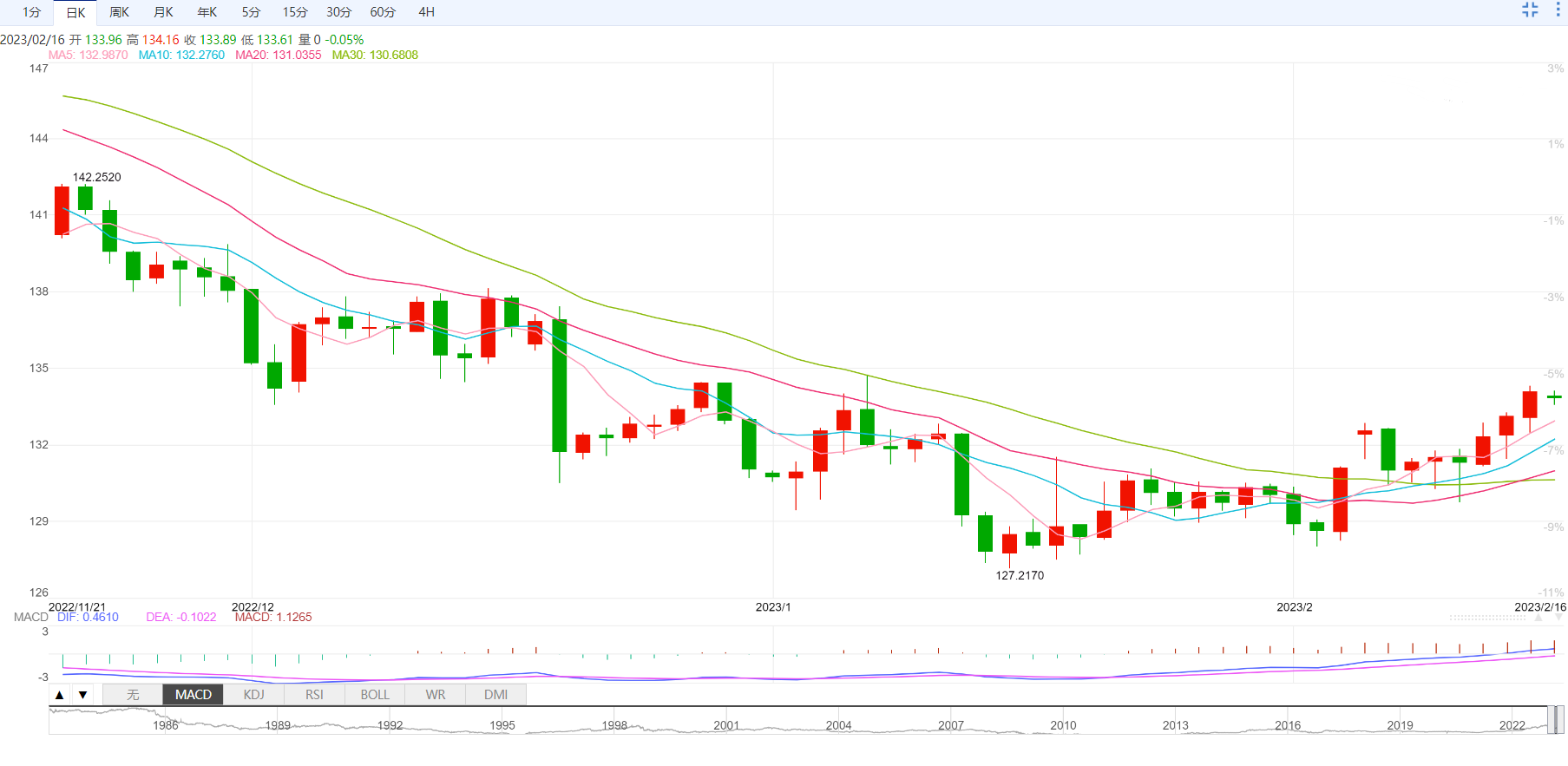 周四多头喘息于一个半月高位附近,4日内首日上涨。进入欧市盘的期间,美元/日元测试133.60支撑位汇合处。但相对强弱指标(14)超买引髮美元/日元回落,1月18日以来的阻力位反转的支撑位和一周上升趋势汇合处133.60附近考验空头。同时MACD信号看涨且日图显示美元/日元走出更高的低位。然而,值得注意的是,美元/日元进一步反弹前景需要验证134.00整数关,然后美元/日元将测试最新高点134.35。随后,前期高位134.80附近和2022年12月高位138.20附近将成为目标。