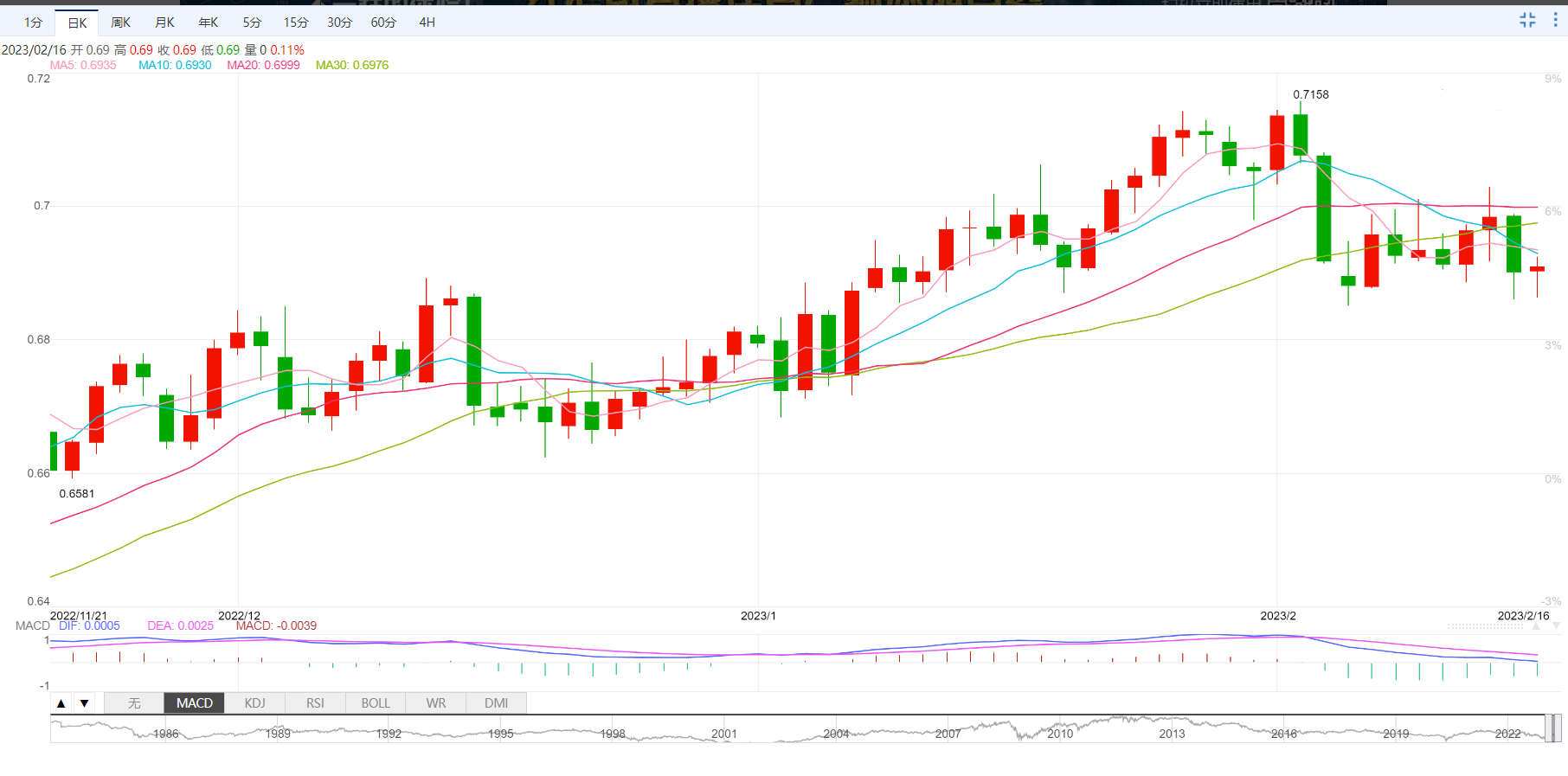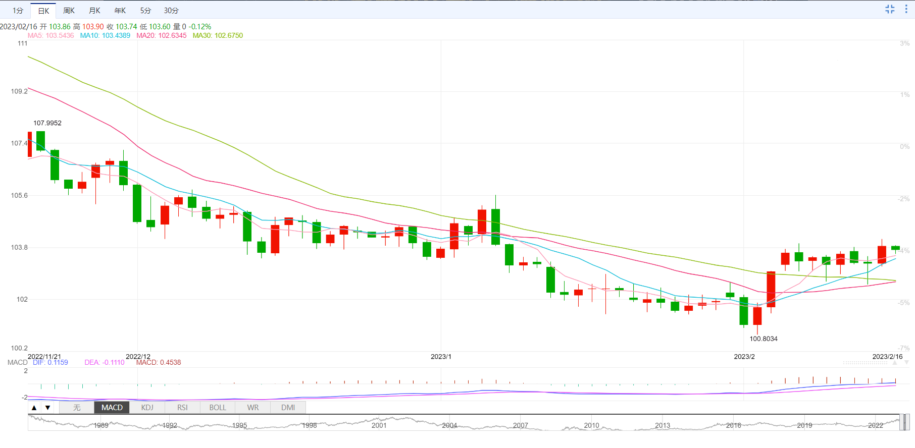 周四盘中,美元指数下跌至103.73,跌幅0.12%;欧元兑美元上涨至1.0700,涨幅0.11%;英镑兑美元上涨至1.2038,涨幅0.03%;美元兑日元下跌至133.91,跌幅0.03%;澳元兑美元上涨至0.6912,涨幅0.12%。