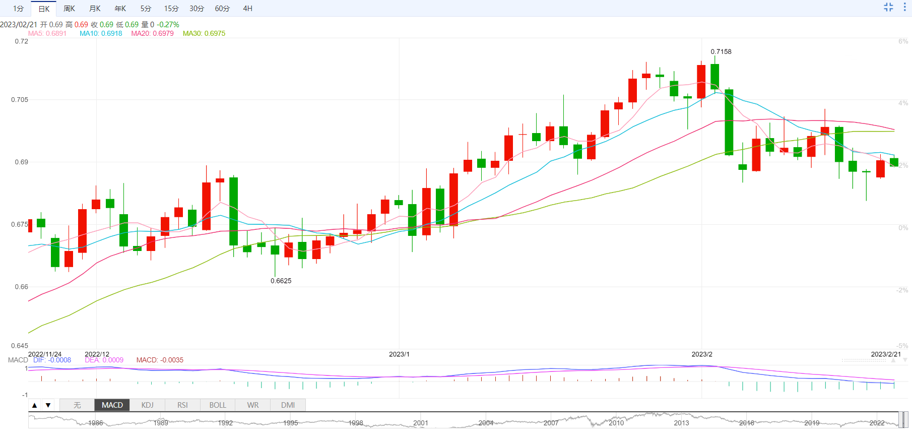 虽然澳洲联储会议纪要偏鹰派且澳洲活动数据乐观,但未能提振澳元。这可能是因为市场为风险厌恶情绪且美元在本週第一个交易日上涨。澳大利亚2月份标准普尔全球PMI的首次读数好于预测值。然而,只有制造业PMI超过了划分活动收缩和扩张的50.0基准值。最新的澳洲联储会议纪要暗示货币政策董事会考虑加息25个基点还是50个基点,但没有讨论暂停加息。该纪要还加剧了市场对该央行频繁採取鹰派行动的担忧并打压澳元兑美元,该央行提到,“月度会议允许频繁调整,费率已经大幅上升。 ”