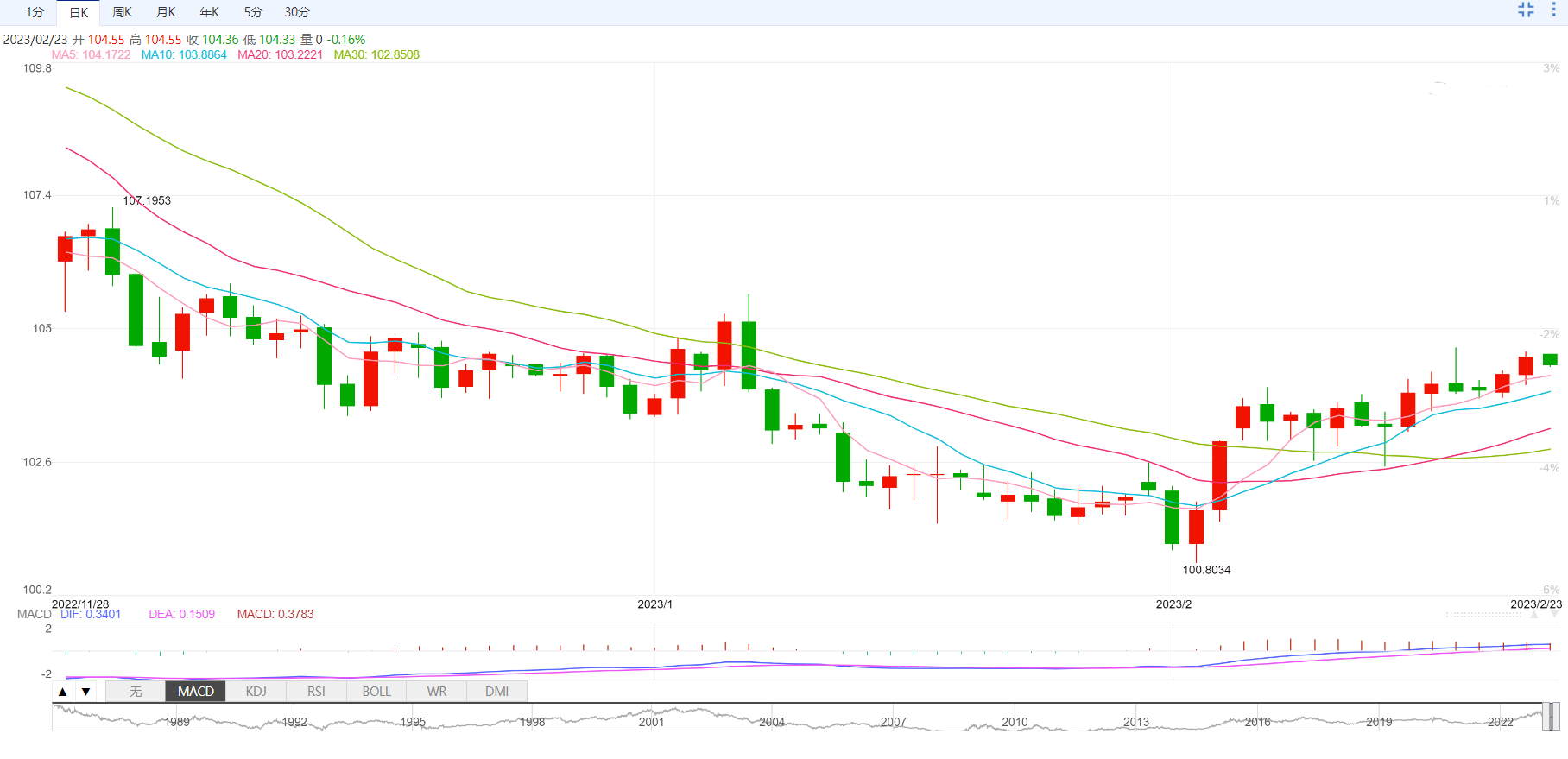 支撑位:104.39 104.58 104.89
