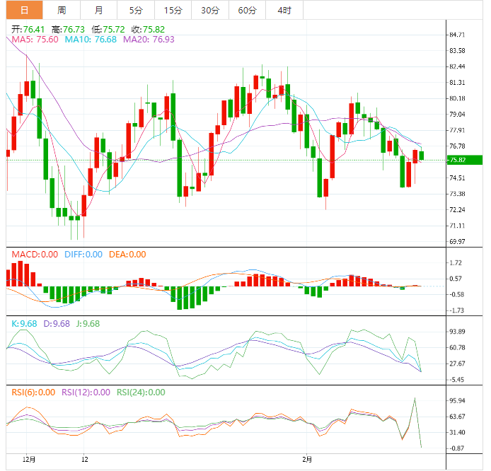 美原油:截止发稿,美原油小幅下跌,现报75.83,跌幅0.89%。欧市盘前,WTI原油价格从上周的反弹中回落,回落至76.50美元,周一早些时候小幅下跌。在这样做的过程中,原油难以证明来自俄罗斯的地缘政治担忧是合理的,也未能为美元在鹰派央行担忧下的回调欢呼。