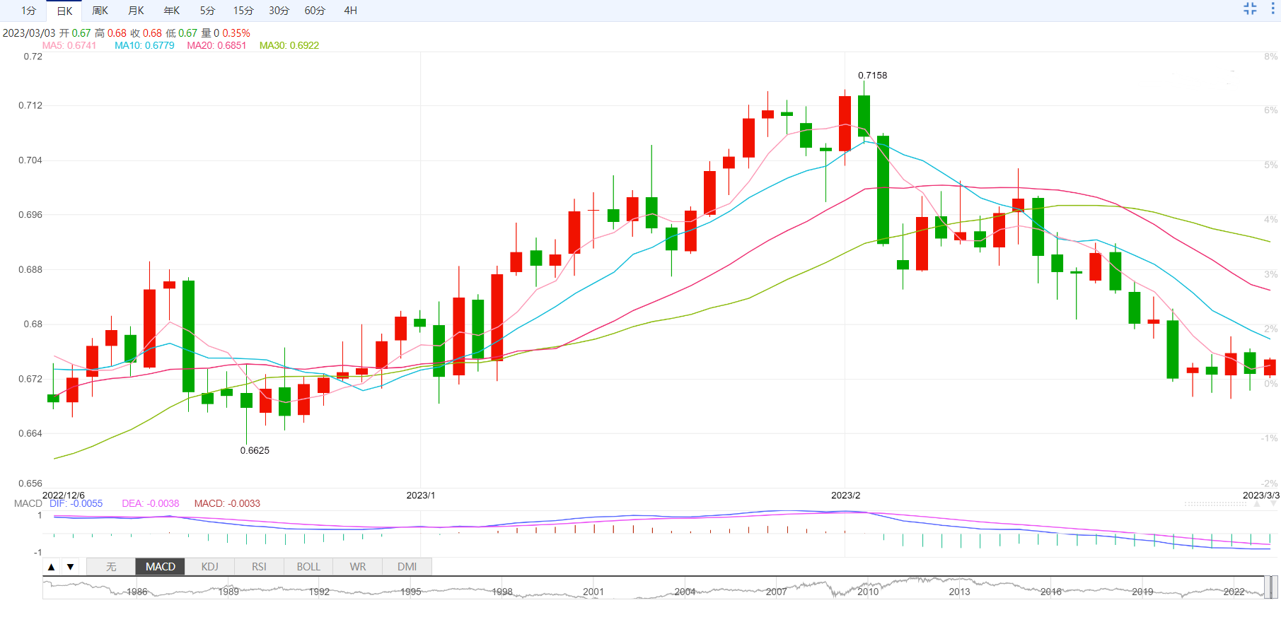 澳元兑美元徘徊于盘中高点0.6752附近,料结束两週跌势。围绕中国的消息利好风险情绪,引髮美元回落,推升该货币对。不过美国ISM服务业指数公佈前市场情绪谨慎,加上澳大利亚数据好坏不一以及澳洲联储政策转向的传闻,似乎增强了该货币对的看涨倾向。最新的路透社调查显示澳洲联储的利率峰值将在第二季度到来,加上调查表明美联储的政策转向,将挑战澳元兑美元交易员。在下週的关键事件前,今日公佈的美国ISM服务业指数料打破市场整理,预计该数据录得54.5,前值55.2。
