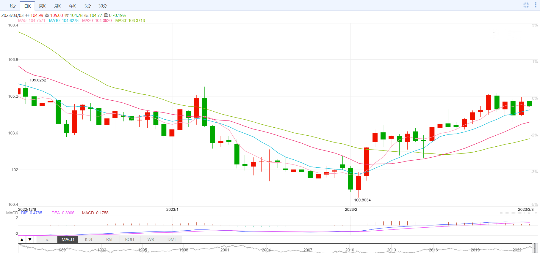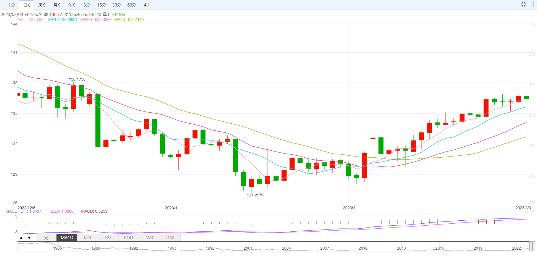 周五盘中,美元指数下跌至104.78,跌幅0.18%;欧元兑美元上涨至1.0616,涨幅0.17%;英镑兑美元上涨至1.1976,涨幅0.28%;美元兑日元下跌至136.45,跌幅0.19%;澳元兑美元上涨至0.6751,涨幅0.34%。