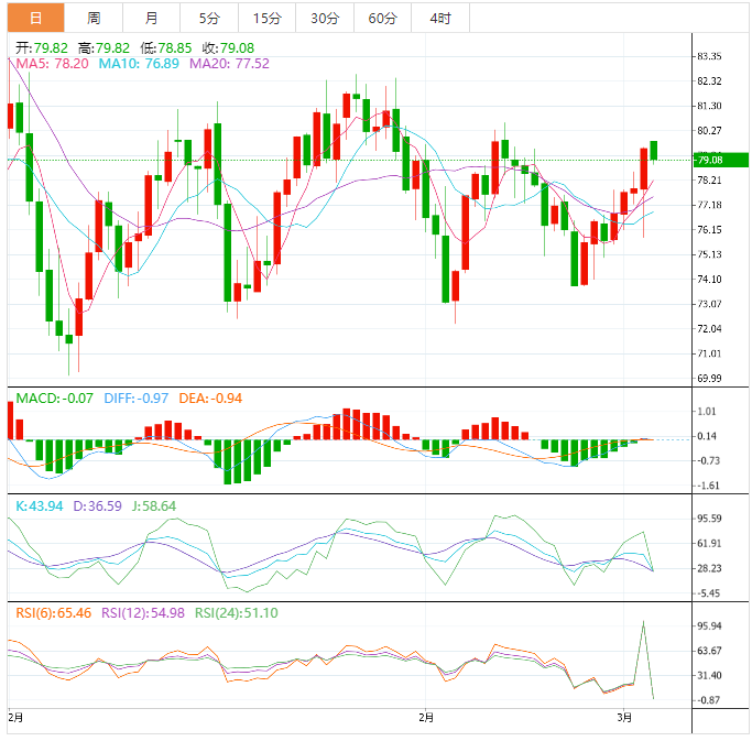 支撑位:77.21 74.57 73.21