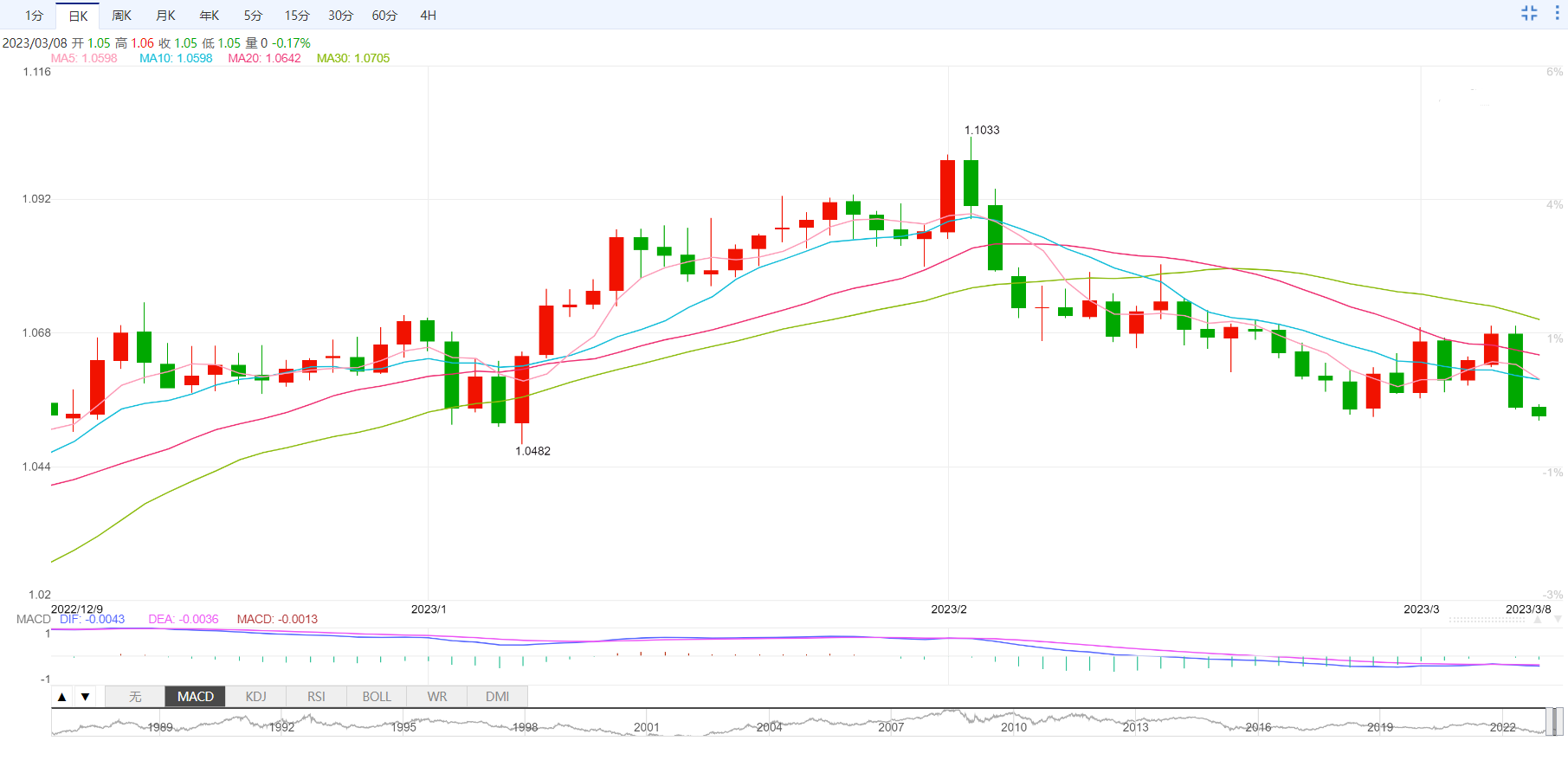 支撑位:1.05 1.0449 1.0351