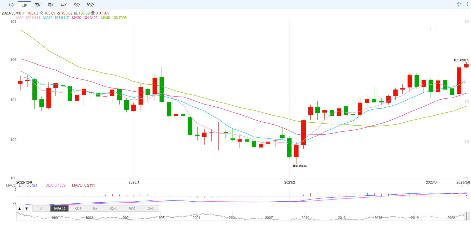 支撑位:104.06 103.85 103.53