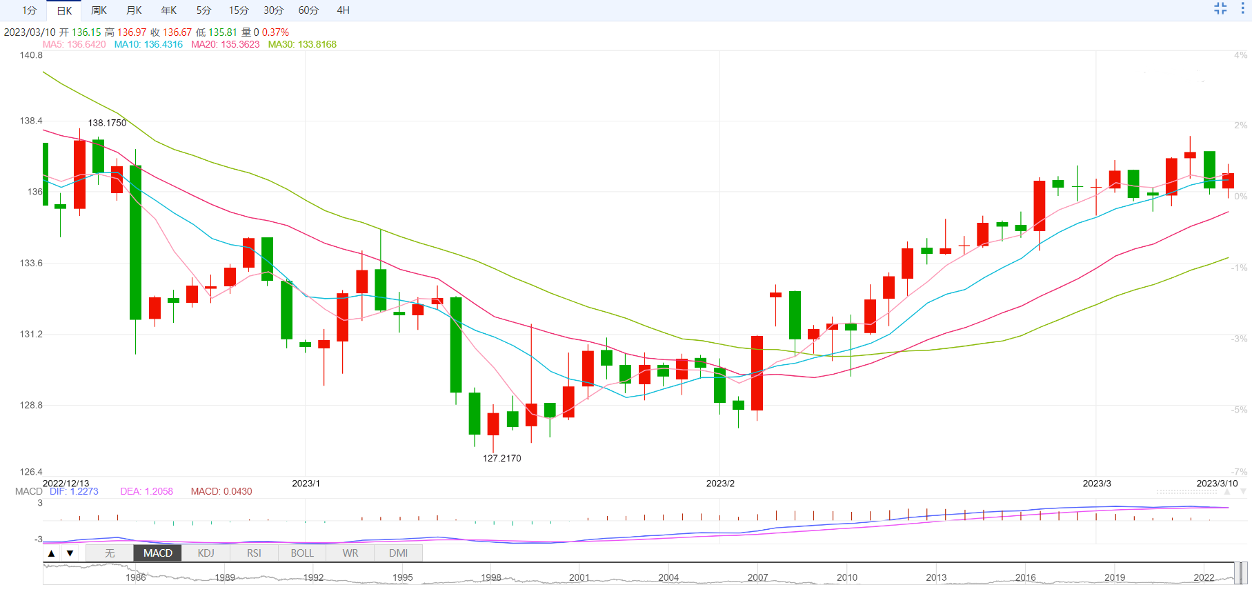 日本央行宣布按兵不动后美元兑日元大幅波动,起初上涨至136.97后回撤至136.30。该货币对印证了日本决策者的鸽派倾向,即使是在黑田东彦在支撑该亚洲货币对近十年后告别。日本央行维持短期利率目标在-0.1%不变,同时维持10年期日本国债收益率目标在+/-0.50%之间不变。不过声明提到通胀预期正在上升,进而加剧了对日本央行超宽鬆货币政策未来的担忧。