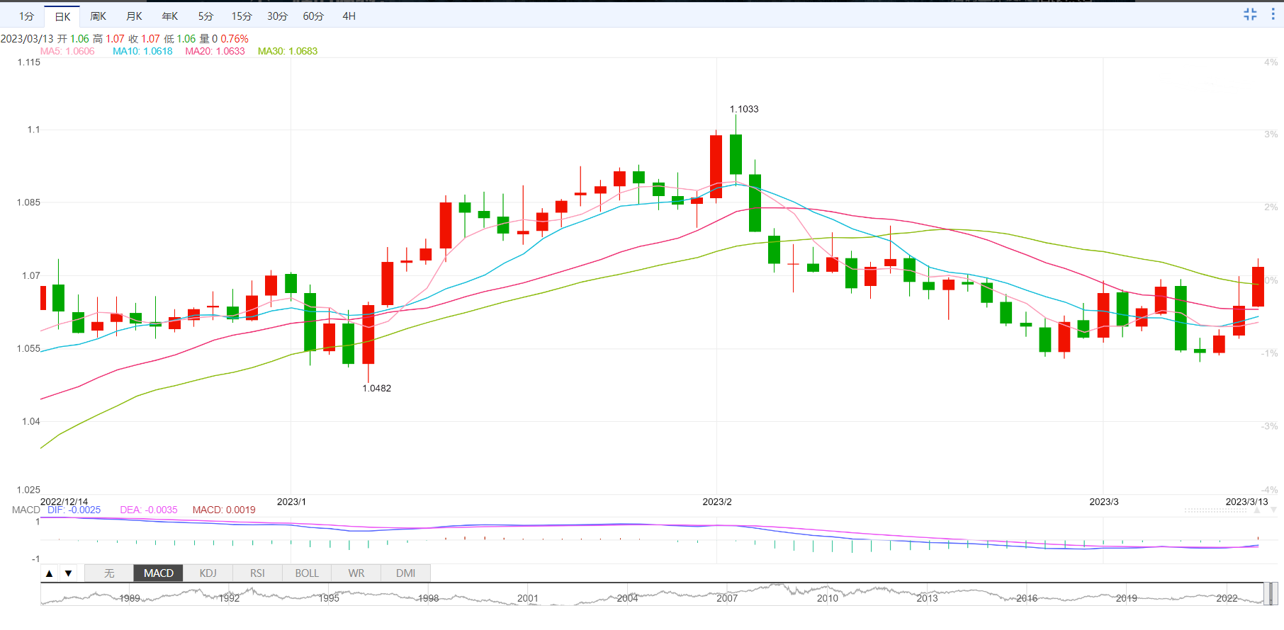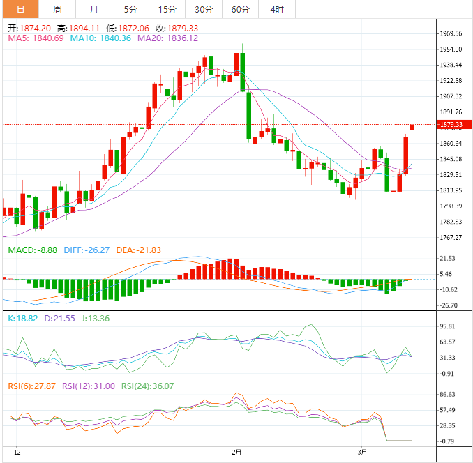 现货黄金:截止发稿,现货黄金小幅看涨,现报1879.39,涨幅0.68%。欧市盘前,黄金价格在前一天突破了1865美元的障碍,现在是支撑位,在广泛的风险情绪中刷新了五周高点。由于硅谷银行(SVB)和Signature Bank事件的影响,美国监管机构遏制金融危机的努力未能引发美国国债收益率的反弹,美元全面走软,为贵金属的上涨增添了力量。