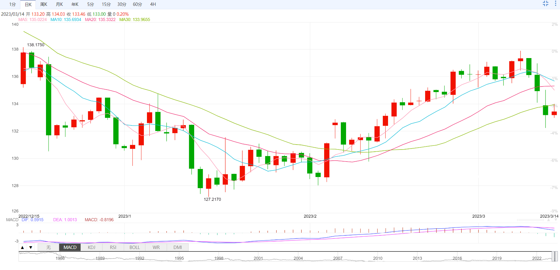 美元/日元温和上涨于133.70附近,结束三日下跌趋势,并自前日走出的一个月低点反弹。在这期间,美国採取行动试图抑制来自硅谷银行(SVB)和Signature银行风险事件所引发的波动,日元货币对受到提振。继前日债券市场灾难之后,美国国债收益率最新有所回升,这可能会为美元/日元反弹增添力量。
