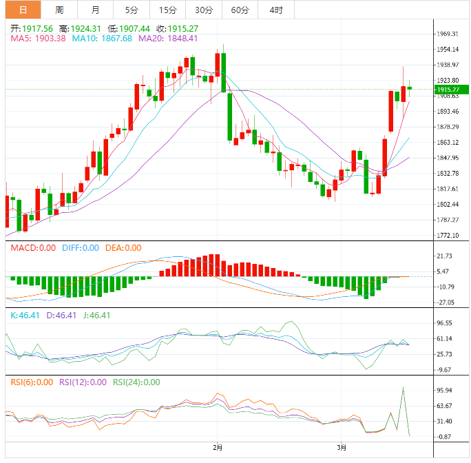 现货黄金:截止发稿,现货黄金小幅下跌,现报1916.47,跌幅0.08%。欧市盘前,金价录得6周新高1,937.39美元/盎司后出现调整。由于全球银行业危机担忧加剧,黄金的吸引力依然强劲,因此该贵金属的调整可能是短暂的。瑞士信贷在硅谷银行(SVB)倒闭后的惨败,引发了全球金融不稳定的风险,而美联储(FED)定于下週的利率决定的不确定性,巩固了对金价的强大吸引力。
