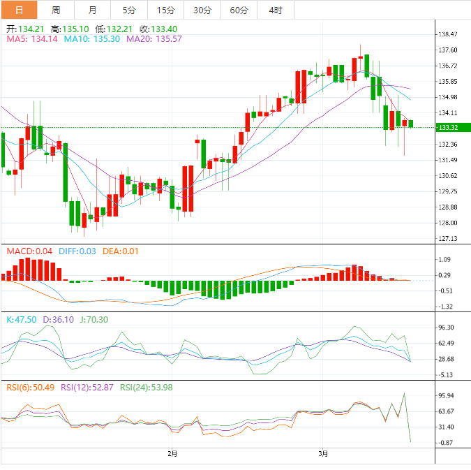 日元:美元兑日元看跌131.00,在未来几天的压力下,该水平很容易回落。美元兑日元从周四收盘时的132.74上涨至133.40。瑞士信贷表示,将从瑞士央行借款540亿美元,以提振流动性和投资者信心,周四外汇市场普遍较为平静。这使得日元对美元横盘,接近美元/日元的趋势线阻力。市场处于看跌趋势线的前端,被日线图上的水平和动态趋势线阻力所淹没。话虽如此,但价格确实回落到之前主导的牛市趋势的后面,而空头则突破了支撑结构。