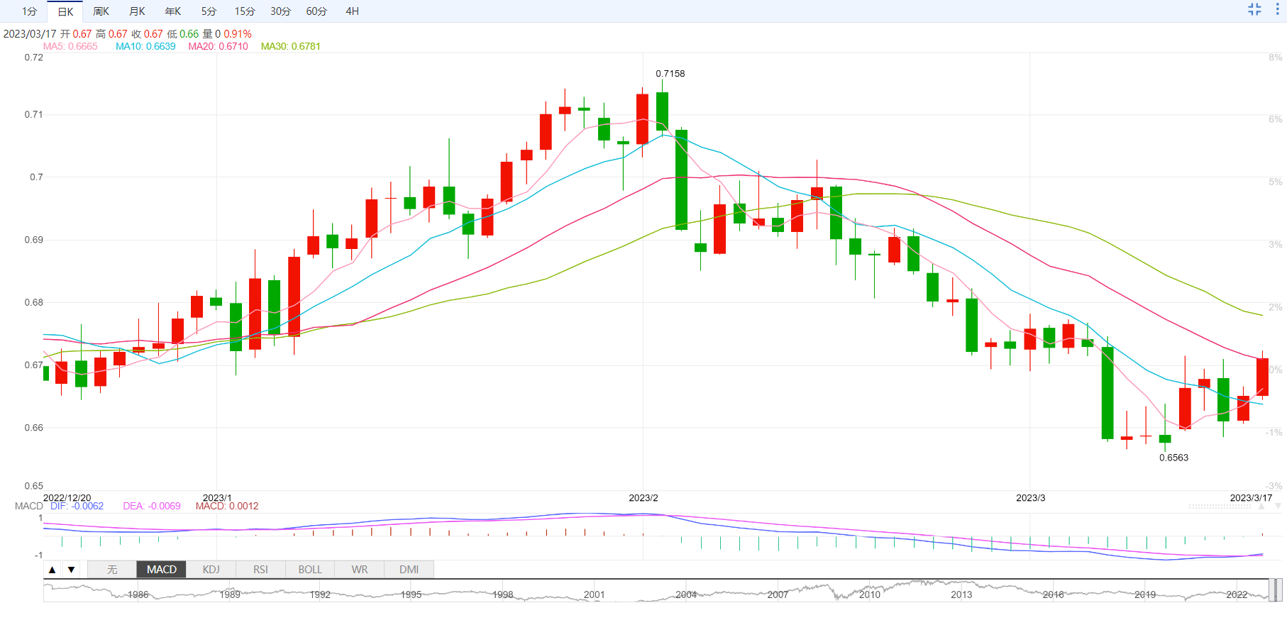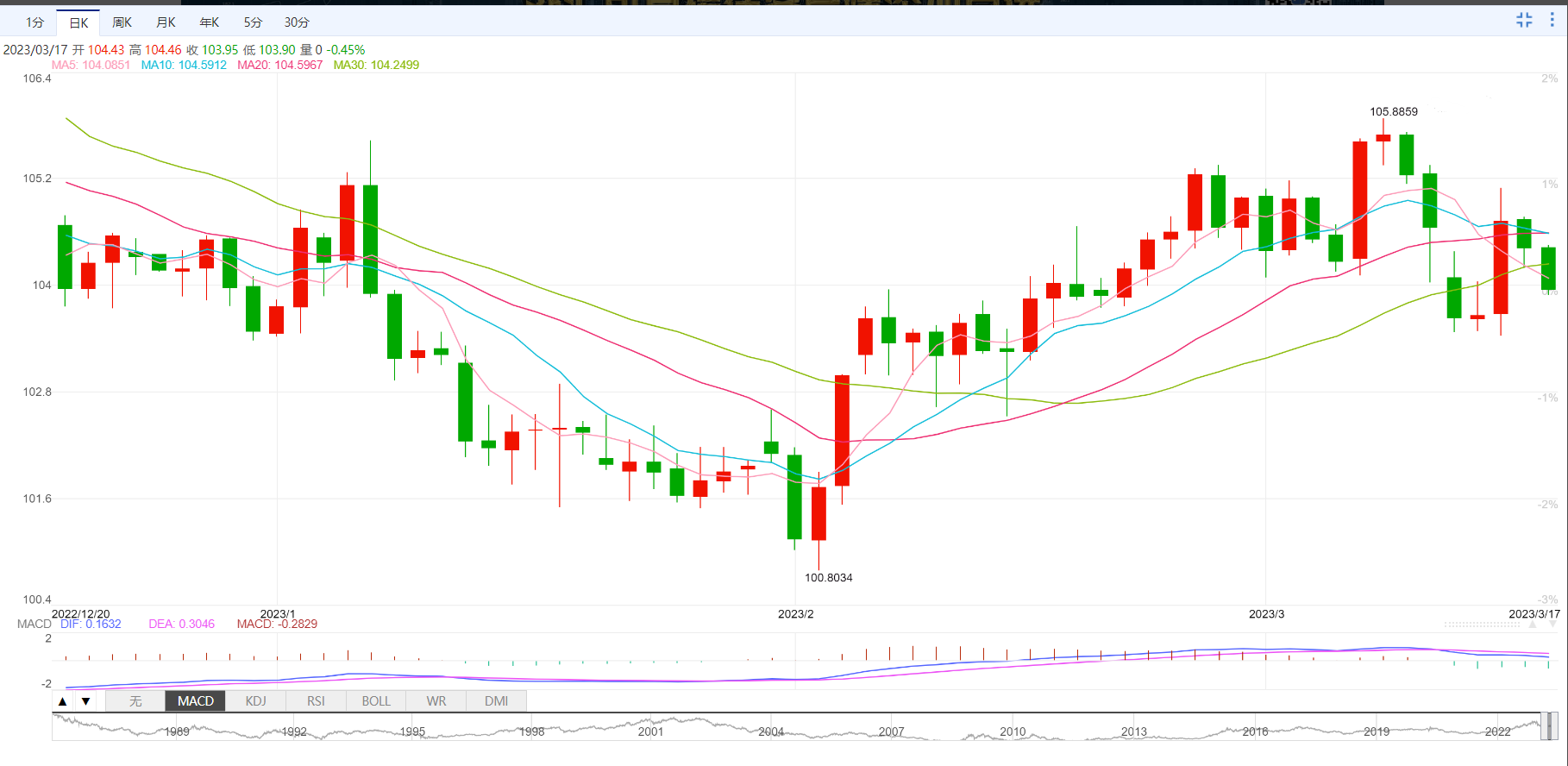 周五盘中,美元指数下跌至103.97,跌幅0.48%;欧元兑美元上涨至1.0665,涨幅0.54%;英镑兑美元上涨至1.2166,涨幅0.61%;美元兑日元下跌至133.13,跌幅0.46%;澳元兑美元上涨至0.6712,涨幅0.83%。