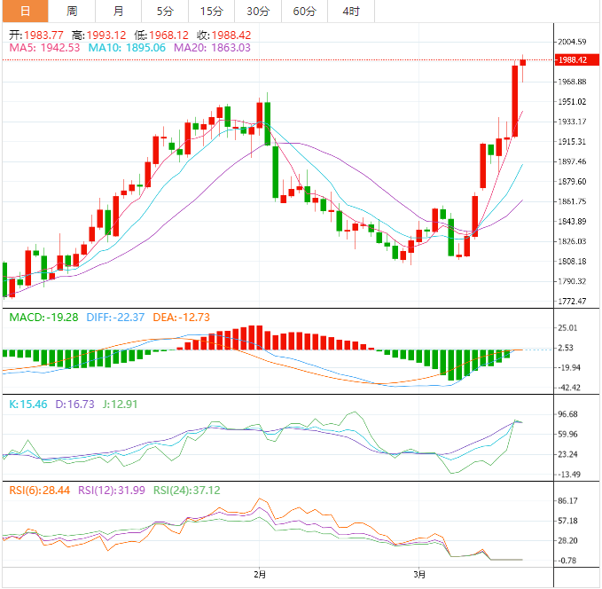 现货黄金:截止发稿,现货黄金小幅上涨,现报1988.47,涨幅0.25%。欧市盘前,金价价格整理至接近1,970.00美元附近。金价在1,970.00美元支撑位附近获得支撑,但有望进一步回调。投资者应该意识到这样一个事实:市场参与者正追捧黄金,以保护自己不受潜在银行业崩盘带来的波动影响。瑞银收购瑞信缓解市场对全球银行业动荡的担忧。这笔收购交易发出了一个信号,即各国央行准备向商业银行提供援助,以恢复投资者的信心。