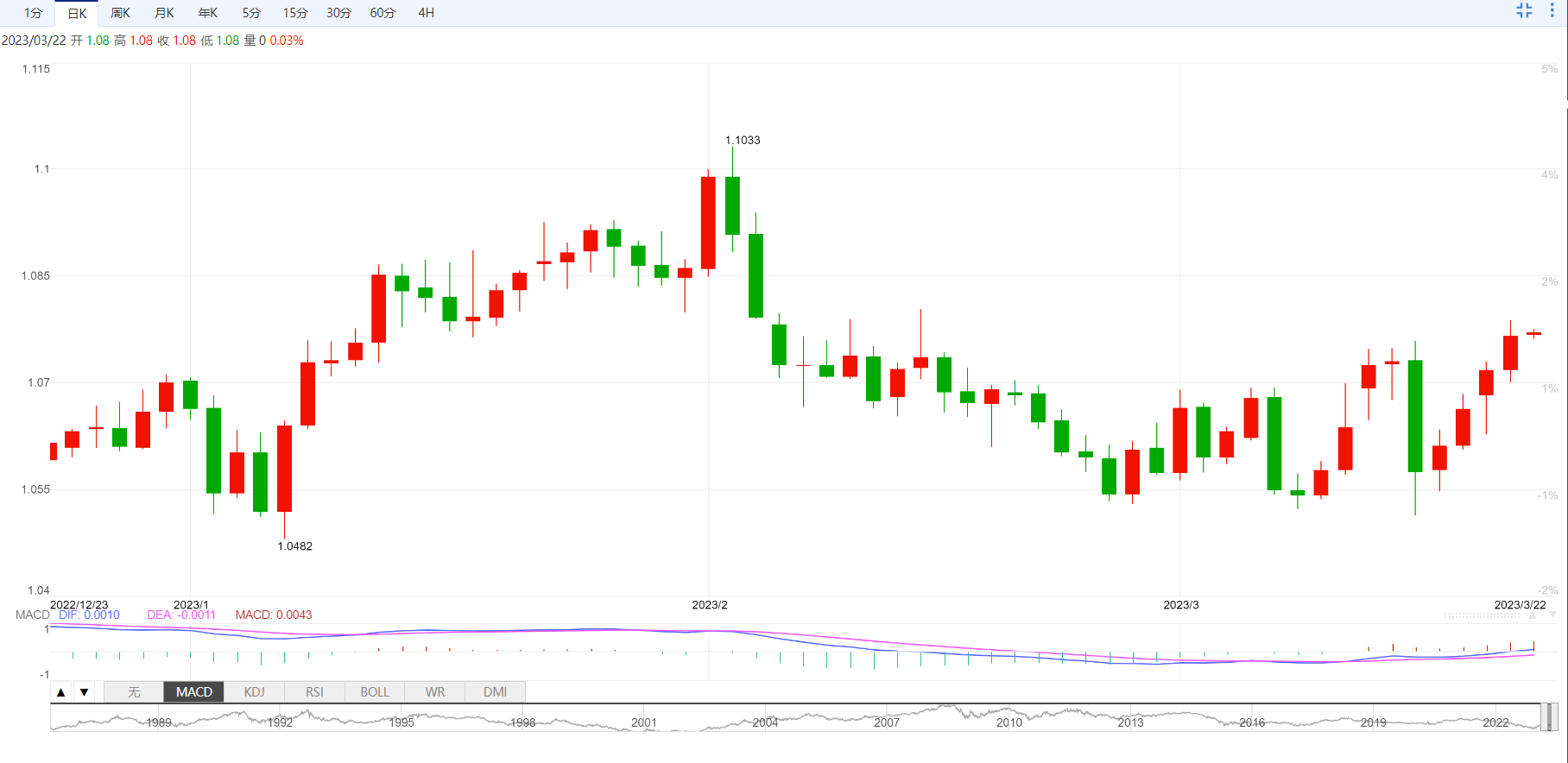 欧元/美元:截止发稿,欧元/美元小幅下跌,现报1.0764,跌幅0.01%。欧市盘前,欧元兑美元于徘徊于1.0770-80附近,美联储决议公佈前市场焦虑情绪上升。欧央行行长拉加德讲话也增强了市场情绪谨慎,同时自3月1日以来形成一个上升三角形形态。