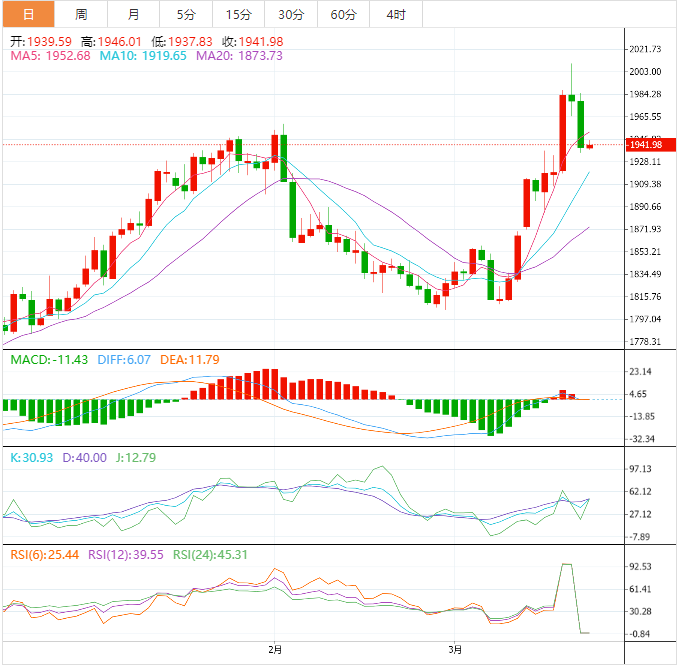 现货黄金:截止发稿,现货黄金小幅上涨,现报1941.64,涨幅0.11%。欧市盘前,金价未能扩大反弹行情突破1946美元后反转至1940美元。金价料继续盘整,因为投资者可能会在美联储利率决议公布后执行有意义的头寸。