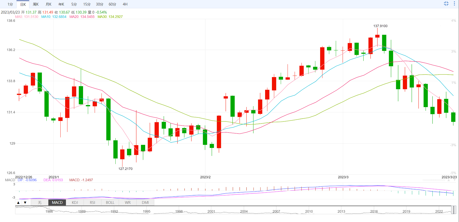 周四盘中,美元指数下跌至101.99,跌幅0.53%;欧元兑美元上涨至1.0919,涨幅0.56%;英镑兑美元上涨至1.2333,涨幅0.55%;美元兑日元下跌至130.67,跌幅0.54%;澳元兑美元上涨至0.6741,涨幅0.92%。