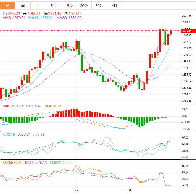 现货黄金:截止发稿,现货黄金小幅上涨,现报1979.04,涨幅0.49%。欧市盘前,黄金价格正在积聚力量,突破了当前的阻力位1,980.00美元。随着美元指数重新开始下行,以及对美国银行业危机的担忧重新抬头,金价已经找到了需求。