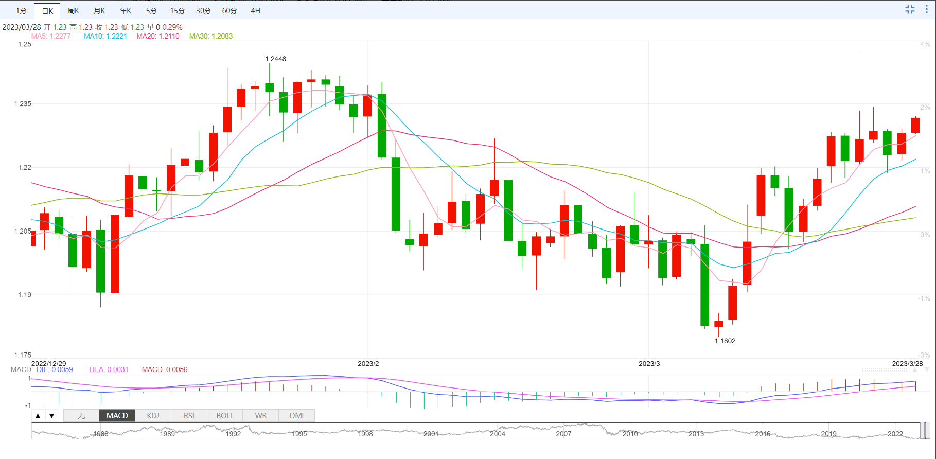 周二盘中,美元指数下跌至102.62,跌幅0.23%;欧元兑美元上涨至1.0816,涨幅0.18%;英镑兑美元上涨至1.2318,涨幅0.28%;美元兑日元下跌至131.00,跌幅0.41%;澳元兑美元上涨至0.6688,涨幅0.58%。