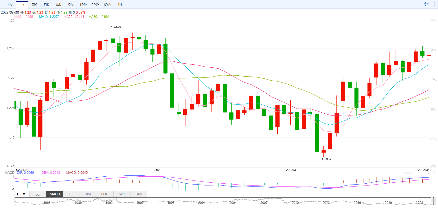 周四盘中,美元指数下跌至102.65,跌幅0.01%;欧元兑美元下跌至1.0836,跌幅0.04%;英镑兑美元上涨至1.2314,涨幅0.01%;美元兑日元下跌至132.52,跌幅0.16%;澳元兑美元上涨至0.6698,涨幅0.23%。
