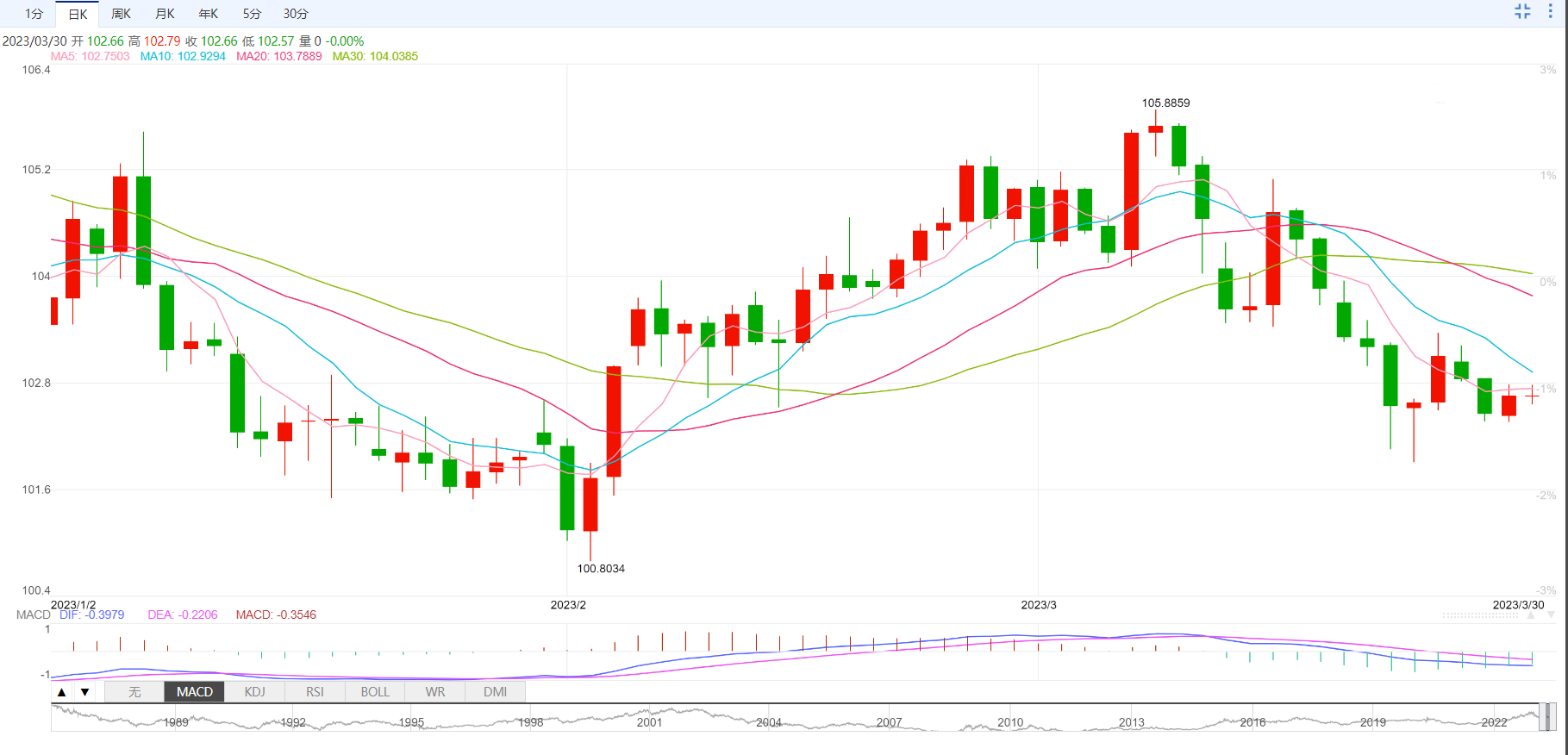 支撑位:102.25 102.07 101.77