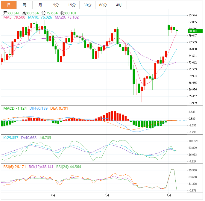 技术面:油价必须明显跌破两週前的支撑线79.40美元才能令空头回归。