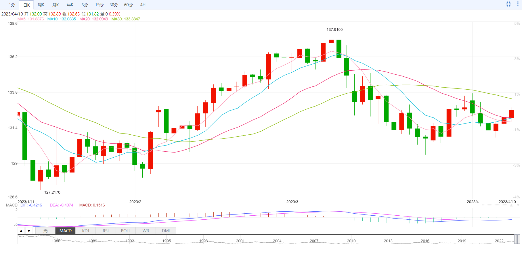 美元兑日元一度上涨0.5%,创四个交易日新高至132.73,延续了上周五类似规模的涨势,当时数据显示美国3月就业岗位继续快速增加。