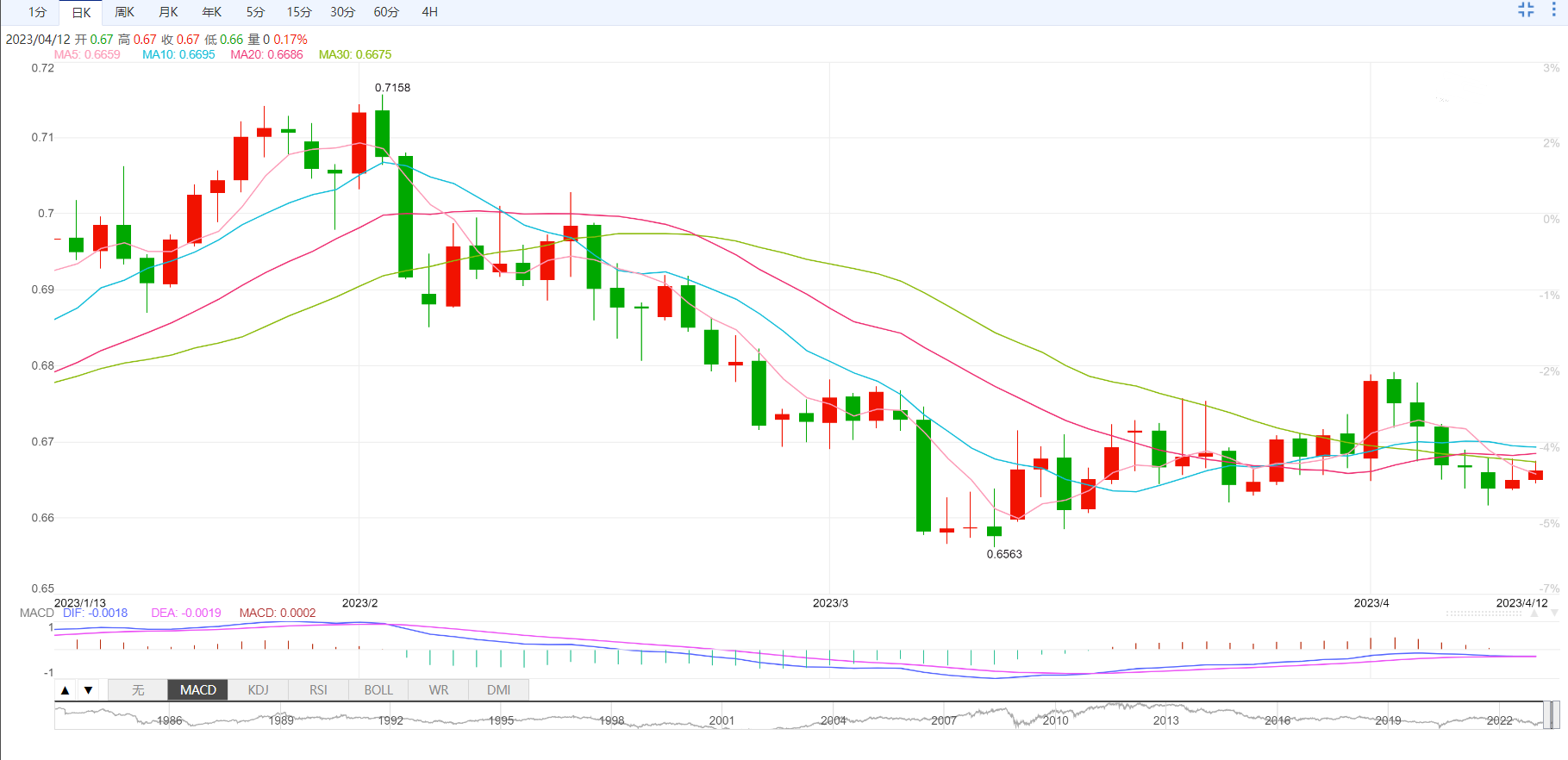 由于澳大利亚经济衰退的担忧缓和,加上美联储官员的鹰派倾向减弱,澳元兑美元在0.6670附近刷新盘中高点。围绕澳大利亚最大的消费国-中国的乐观催化剂也增强其上涨势头。澳元兑美元受到市场谨慎乐观情绪以及围绕中澳经济乐观情绪支撑。不过该货币对能否进一步上涨将取决于美国3月通胀率和FOMC3月会议纪要。若通胀低于预期,纪要暗示了鹰派讨论,澳元可能重新收集澳洲联储的鸽派行动并收窄近期涨势。