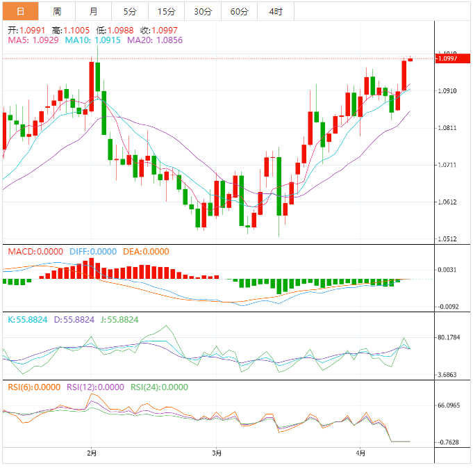 日内关注,澳大利亚3月季调后失业率,澳大利亚3月就业人口变动,中国3月贸易帐,英国2月工业产出月率,英国2月GDP月率,美国截至4月8日当周初请失业金人数,美国截至4月1日当周续请失业金人数,美国3月PPI年率。需要关注的大事件包括韩国央行公布利率决议,英国央行首席经济学家皮尔发表讲话,加拿大央行行长麦克勒姆在IMF春季会议发表讲话,OPEC公布月度原油市场报告。