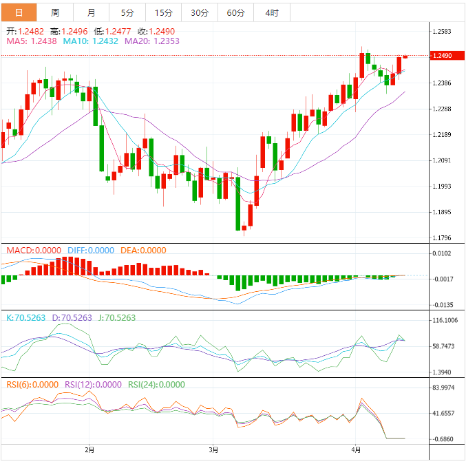 英镑:英镑/美元正积聚动能,以便亚市重新夺回1.2500的心理阻力。週三,美国通胀疲弱符合预期后,英镑/美元大幅上涨。英国国内生产总值和生产数据(2月)公佈前,英镑预计将出现一些波动。英国国内生产总值月率预计将录得0.1%,而前值为0.3%。工业和制造业生产月率可能会上升0.2%。英镑/美元正上涨接近4月4日高点1.2525的水平阻力。英镑/美元突破下降通道形态后获得提振。