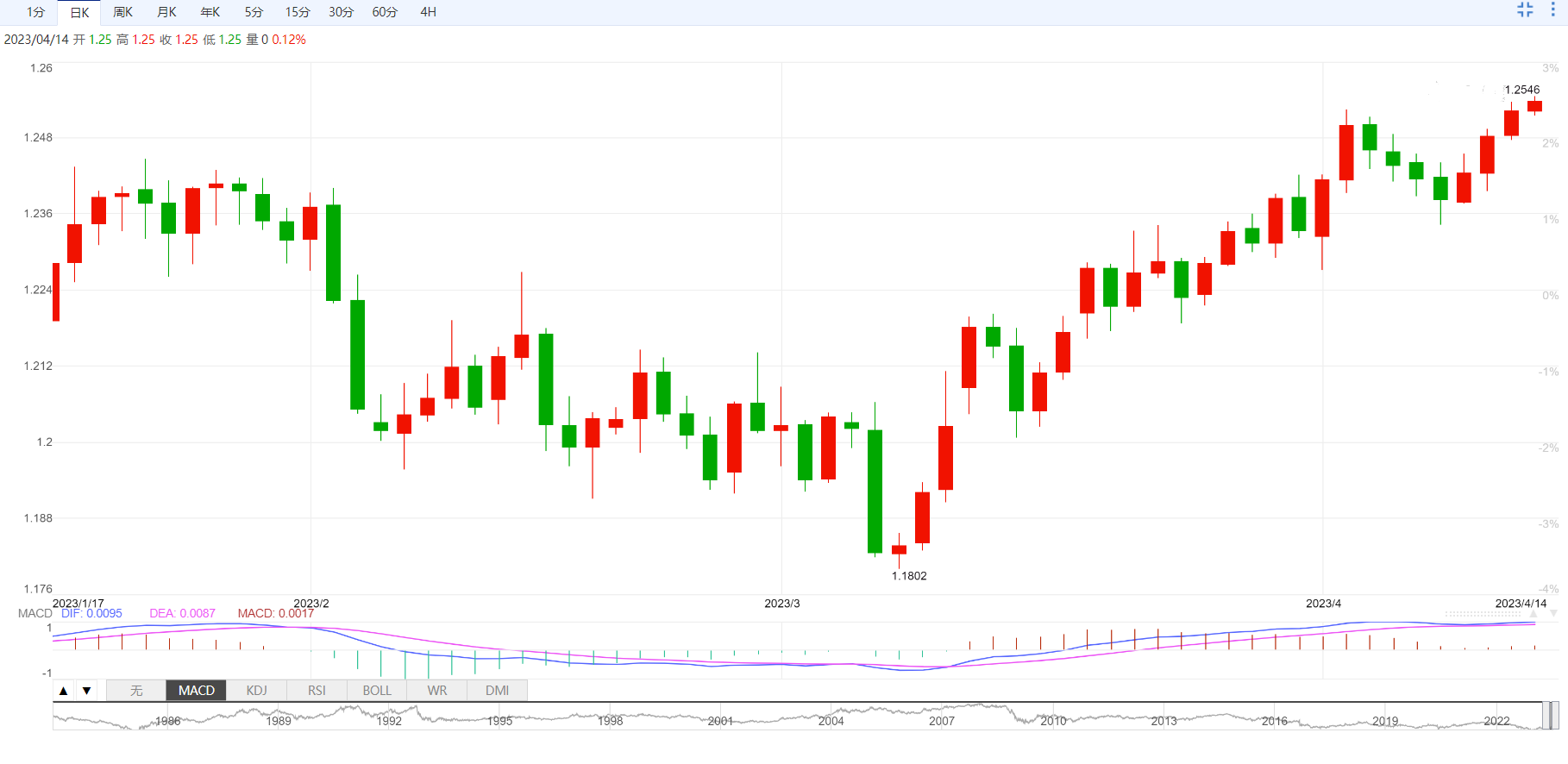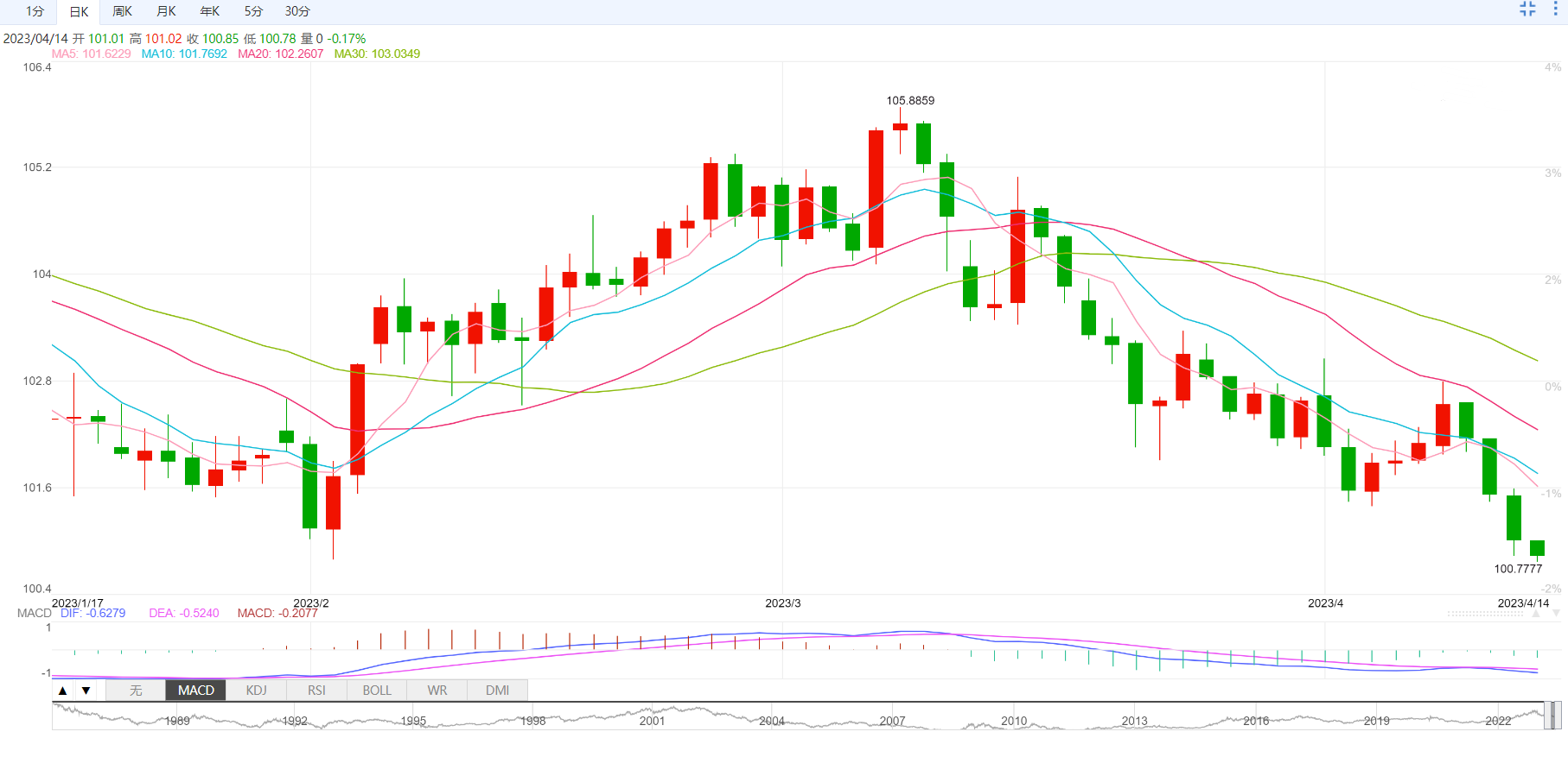 美元指数跌破2月录得的2023年低点,空头攻击100.80的水平,目前位于100.85附近。在3月零售销售数据公佈之前,预计美元指数将出现剧烈波动。市场预计零售需求将继续萎缩,增幅料持平于2月的0.4%。这可能会加强美联储主席杰罗姆-鲍威尔更早暂停加息的要求。
