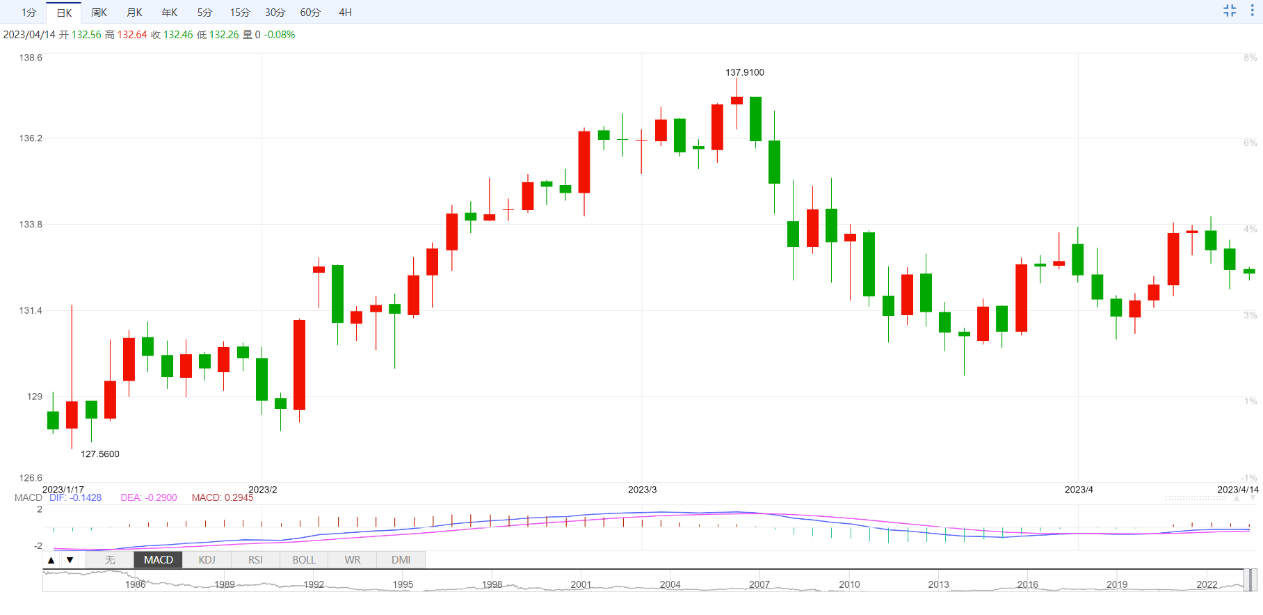 今天在132.00有10亿美元期权到期,在133.00还有7.62亿美元;下周一在132.50还有10亿美元期权到期。