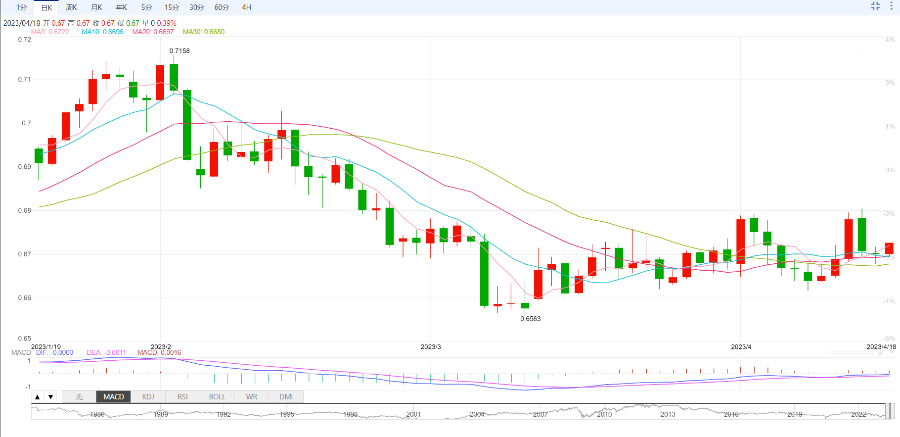 周二盘中,美元指数下跌至101.99,跌幅0.10%;欧元兑美元上涨至1.0938,涨幅0.12%;英镑兑美元上涨至1.2390,涨幅0.09%;美元兑日元下跌至134.38,跌幅0.03%;澳元兑美元上涨至0.6727,涨幅0.39%。