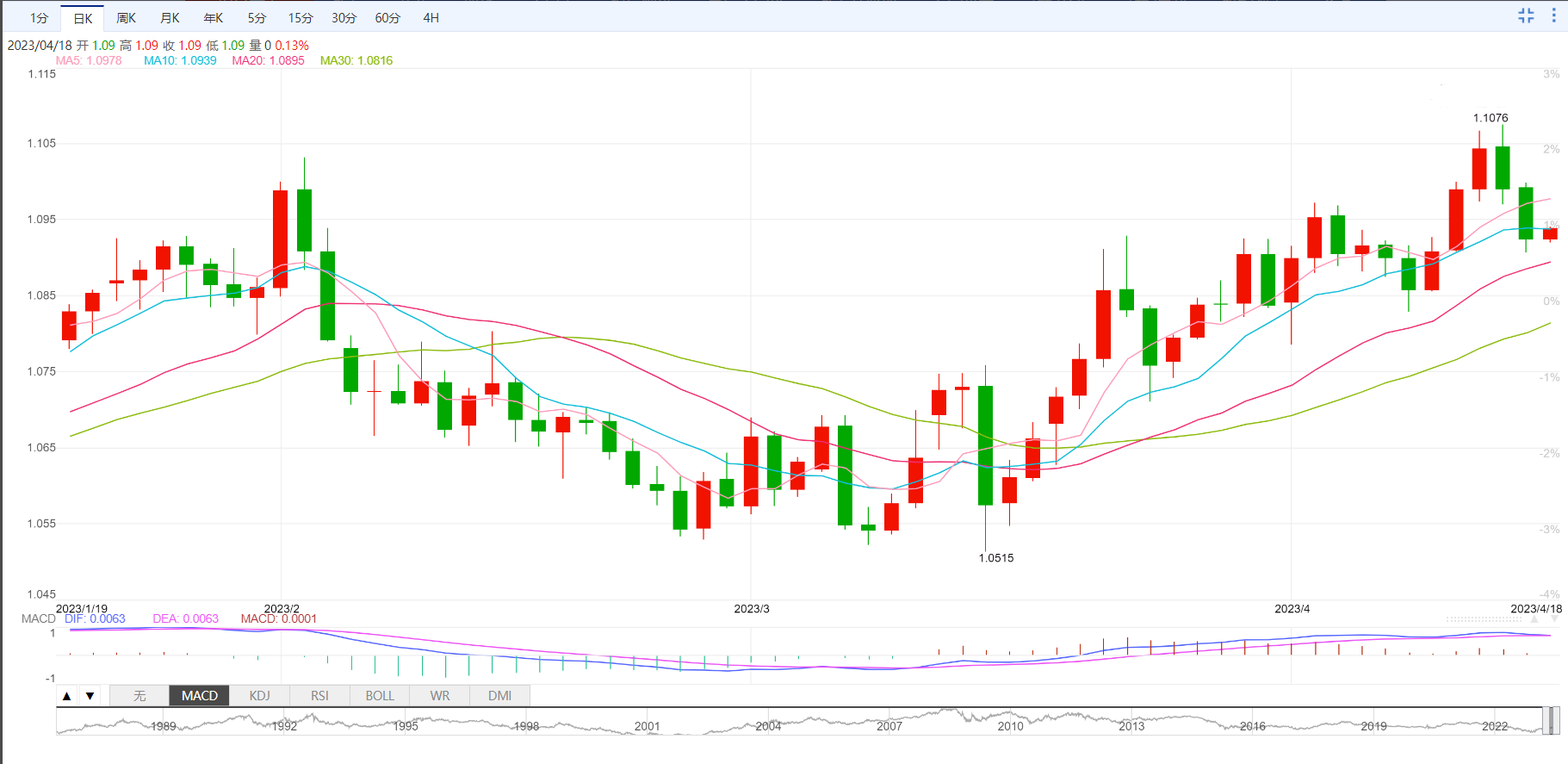 欧元/美元刷新盘中高位处在1.0940附近。在这期间,欧元/美元自一周以来的最低水平回升,三个交易日内首日上涨。欧元/美元最新反弹可能与美元回撤及跟随美债收益率波动有关。同样可能挑战欧元/美元多头的是今天关键的欧元区和德国4月ZEW景气指数。接下来,欧元区和德国4月份的ZEW调查数据将在美国3月新屋开工和营建许可前成为焦点,指引欧元/美元波动。然而焦点仍处在风险催化剂和央行官员讲话上,欧元/美元将藉此明确方向。