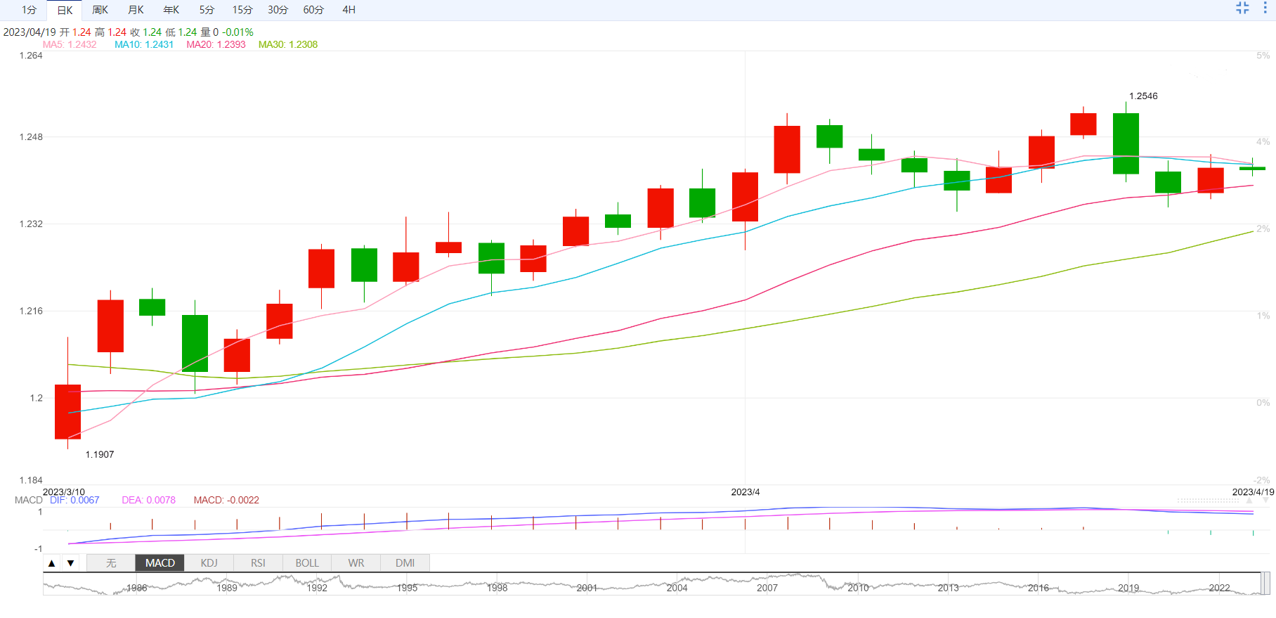 英镑/美元:截止发稿,英镑/美元走高,现报1.2460,涨幅0.31%。欧市盘前,由于英国3月总体通胀率意外乐观,英镑兑美元在数据公佈后上涨27点。该货币对于週三伦敦时段早盘在1.2440附近刷新盘中高点。英国3月CPI年率录得10.1%,预期9.8%,前值10.4%,核心CPI年率录得6.2%,市场预期6.0%。