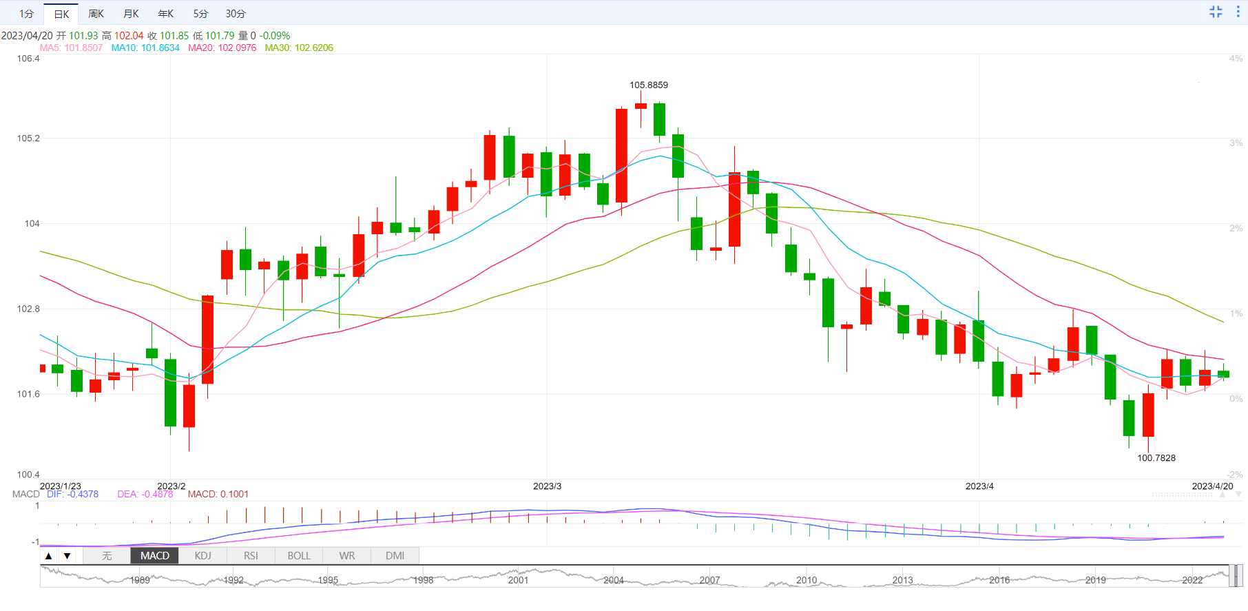 支撑位:101.54 101.34 101.04