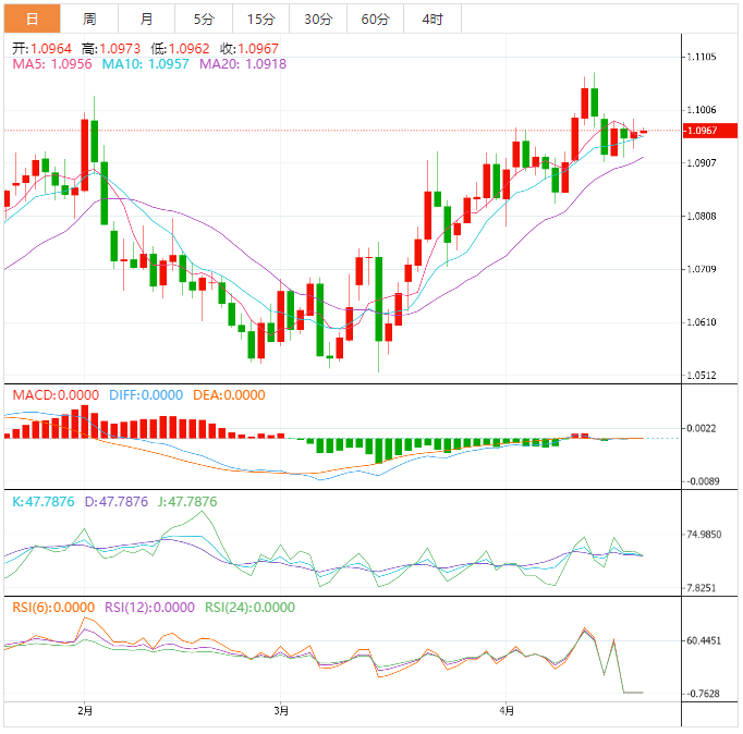 欧元:欧元兑美元在修正后从1.0960反弹,但由于投资者正在等待欧元区/美国标准普尔采购经理人指数(4月)初值的发布,因此处于危险之中。过去两个交易日以来,主要货币对一直保持在1.0911-1.1000的范围内,因为外汇领域正在为美联储货币政策决定之前的焦虑前期走势做准备。在欧元区方面,4月消费者信心指数初值从预期的-18.5和之前发布的-19.2改善至-17.5。这可能是欧洲央行(ECB)做出巨大努力后通胀压力持续下降的结果。